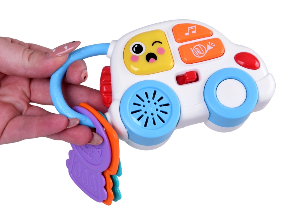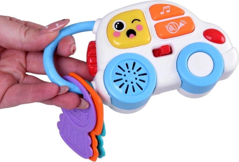 Malé autíčko s vlastnými svetlami a zvukmi možno vybrať a hrať sa s ním samostatne. Textúrované kľúče skvele padnú do rúčok a lákajú k uchopeniu.