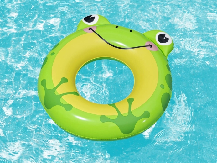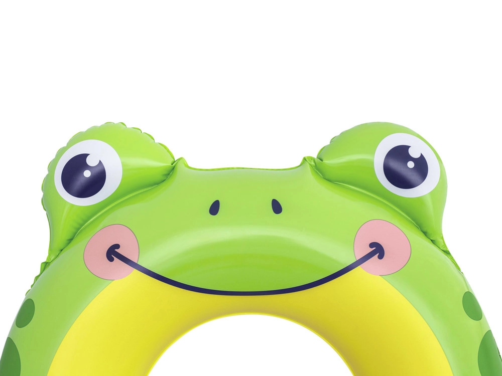 Veselá tvár žaby, oči a bodkované detaily motivujú deti k vodným hrám a zlepšujú viditeľnosť na hladine.