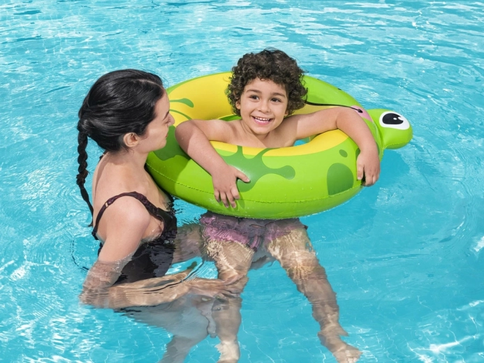 Užite si leto s detským kruhom Bestway SPLASHPALS v podobe veselej žabky. Ľahký a odolný nafukovací materiál zaisťuje spoľahlivý vztlak, zatiaľ čo premyslený tvar podporuje stabilitu na vode. Výrazná zelená farba a hravá grafika zvyšujú viditeľnosť, takže budete mať dieťa vždy na očiach.