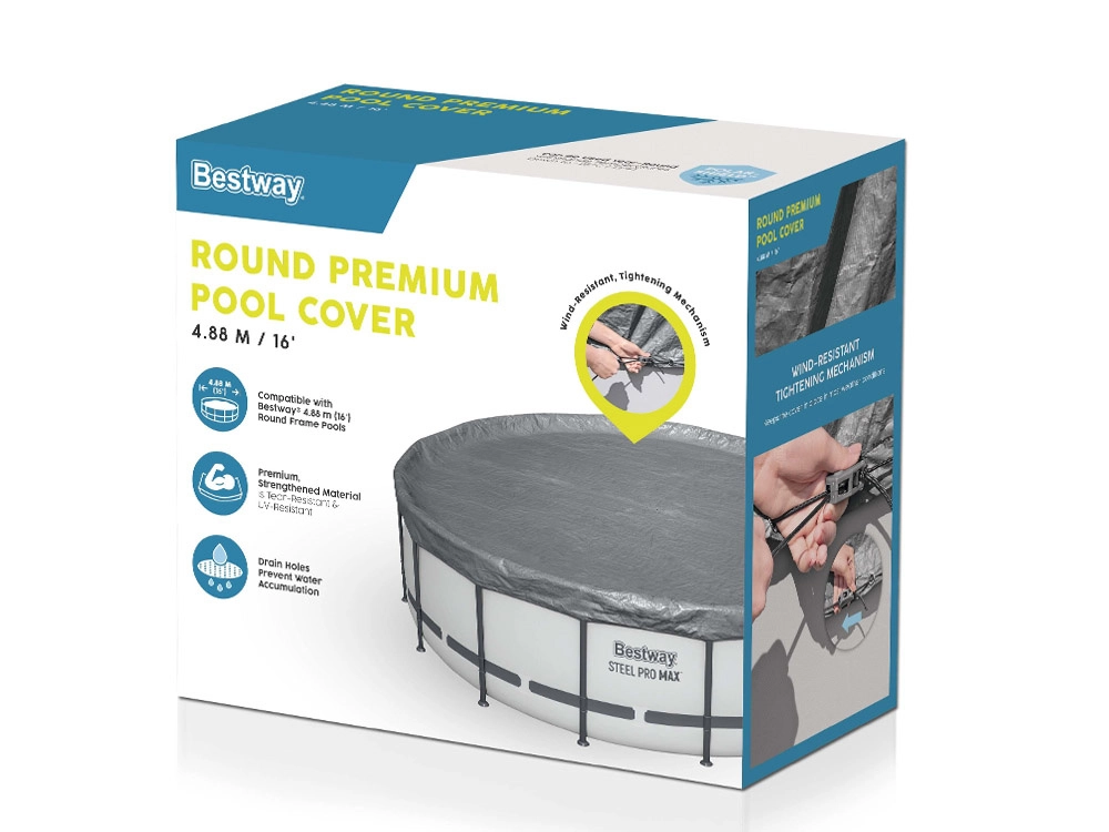 Udržte vodu v bazéne čistú a pripravenú na kúpanie s krycou plachtou BESTWAY pre okrúhle nadzemné bazény s priemerom 4,88 m. Odolný materiál s úpravou Polar‑Shield, UV ochranou a zosilneným prevedením proti roztrhnutiu spoľahlivo chráni pred lístím, trávou a nečistotami. Vďaka vetruodolnému sťahovaciemu systému a drenážnym otvorom plachta pevne sedí a nezadržiava zrážkovú vodu ani pri premenlivom počasí.