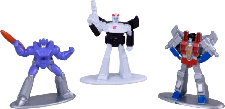 Prémiová kolekcia Nano Metalfigs séria 3 spája legendy G1 aj hrdinov Beast Wars. Každá figúrka je vyrobená z odolného die-cast kovu, má starostlivé lakovanie a stojí na stabilnom podstavci – perfektné na vystavenie aj kreatívne hranie.