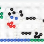 Bez predlôh, so 120 farebnými dielikmi s priemerom 10 mm si deti vytvárajú vlastné obrázky a trénujú kreativitu.
