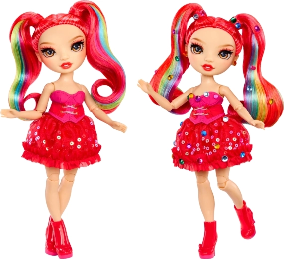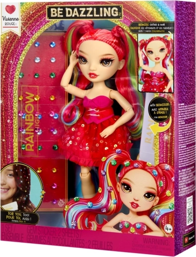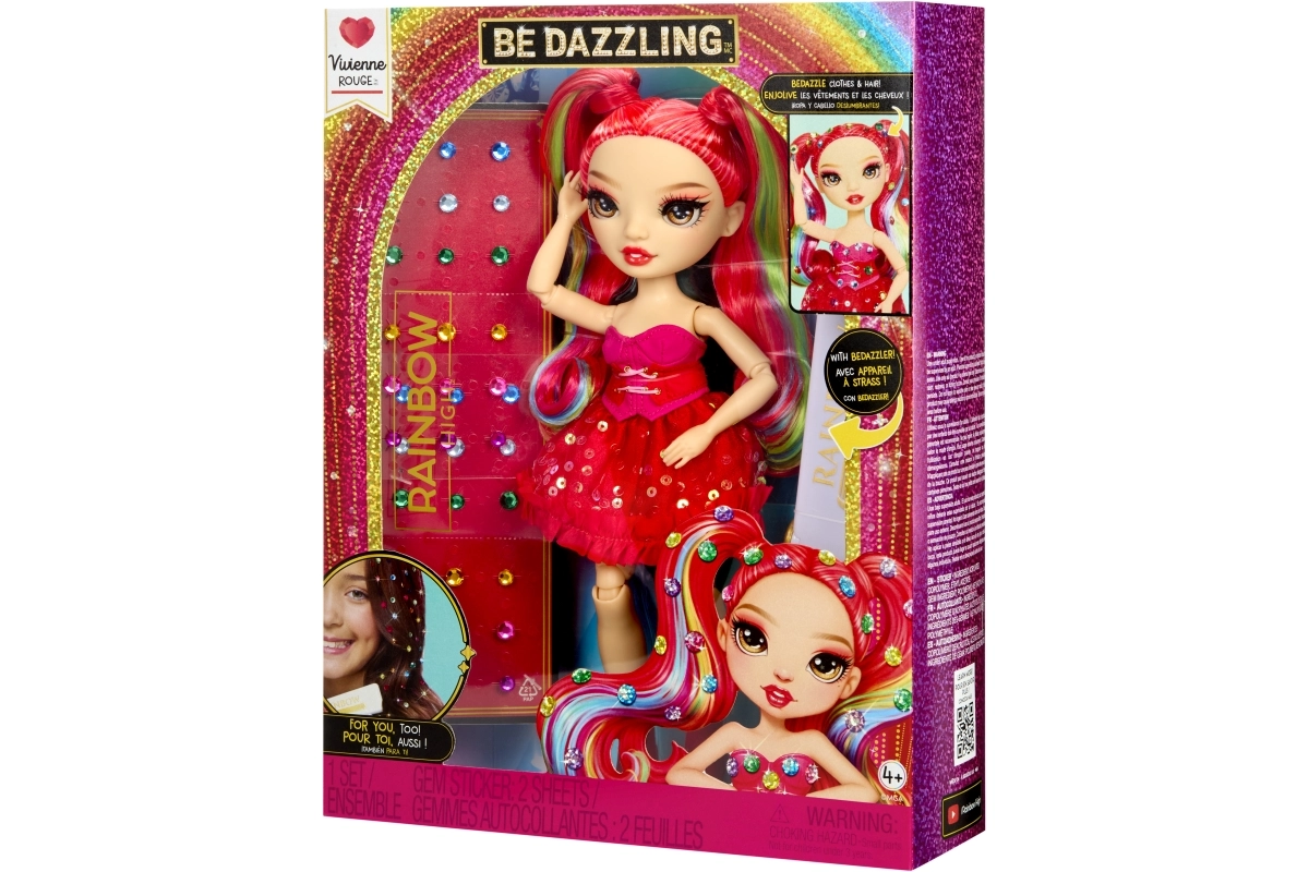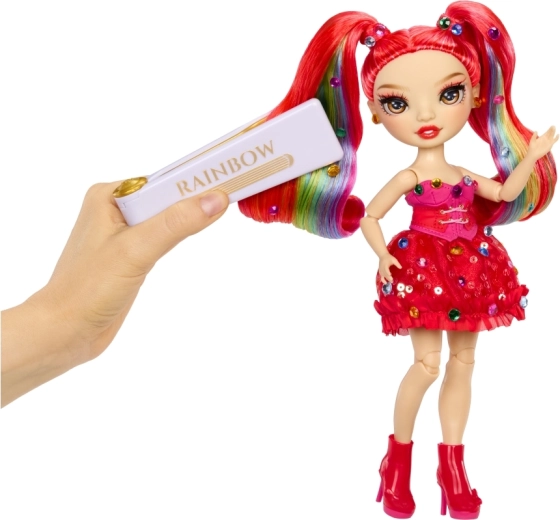 Bábika Rainbow High Vivienne Rouge prináša do tvojej zbierky výraznú červenú energiu a módu inšpirovanú spektrom dúhy. Jej dlhé česateľné vlasy s dúhovými prameňmi, trblietavé šaty a ladiace topánky umožňujú vytvárať pôsobivé kombinácie na hranie aj vystavenie. Vďaka kĺbom v pažiach, nohách a hlave ju ľahko nastavíš do rôznych póz.