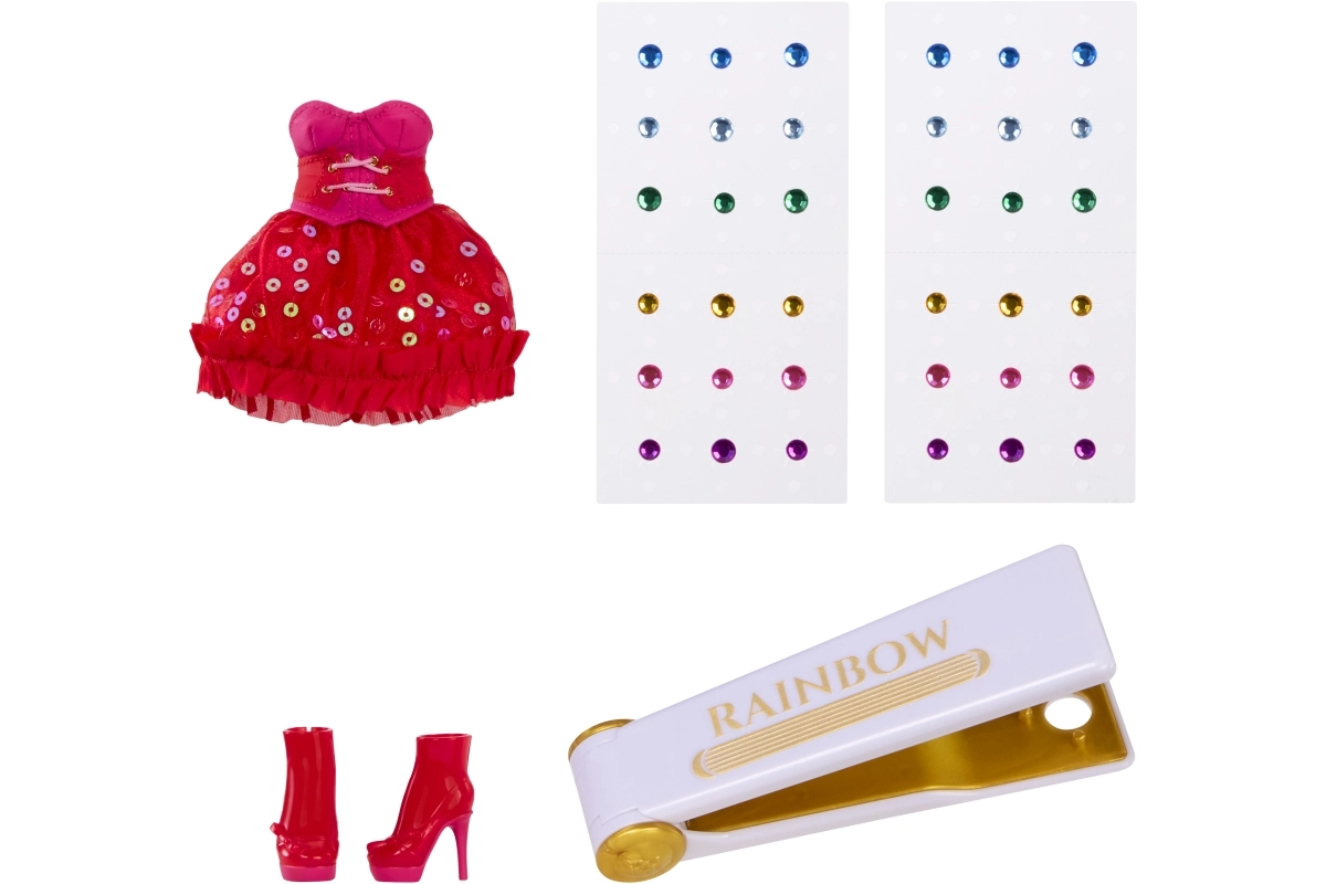 S priloženým nástrojom Rainbow High môžeš rýchlo a jednoducho aplikovať farebné kamienky na vlasy alebo oblečenie a behom chvíľky vytvoriť jedinečný glam look. Táto sada podporuje kreativitu, sebavyjadrenie a rozvoj jemnej motoriky — ideálny darček pre malé stylistky aj zberateľky.