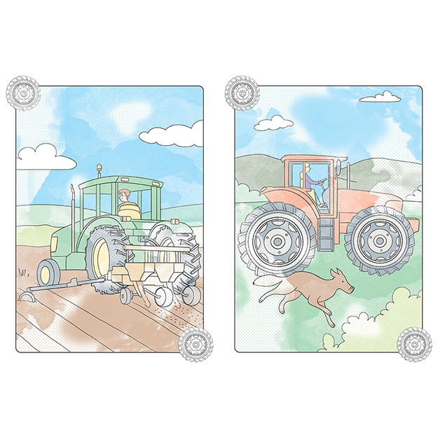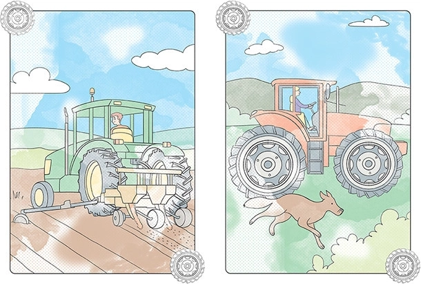 - 8 magických obrázkov s motívmi traktorov a poľnohospodárskych strojov.
