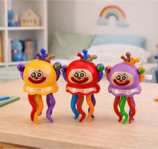 Veselá natiahovacia chobotnica v štýle klauna prináša deťom množstvo zábavy a podporuje ich zručnosti. Po jednoduchom natiahnutí sa hračka rozbehne po rovnom povrchu a jej farebné chápadlá sa rytmicky hýbu. Bez batérií, jednoduché ovládanie a bezpečné, odolné prevedenie z nej robia skvelého spoločníka na každodenné hranie doma aj na cestách.
