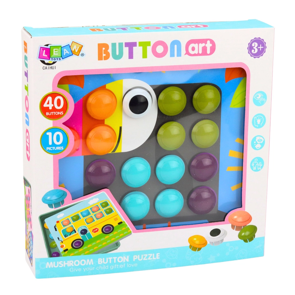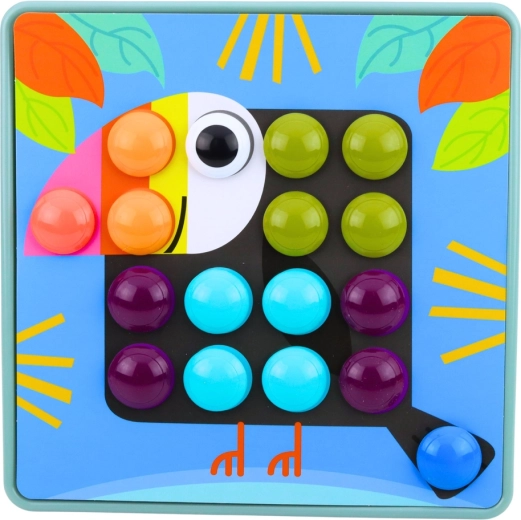 Táto kreatívna mozaika s hríbikmi je ideálna vzdelávacia hračka pre predškolákov. Veľké, zaoblené gombíky sa ľahko vkladajú do otvorov, čo podporuje správny úchop a posilňuje jemnú motoriku. Vďaka pestrým farbám sa deti učia triedenie a pomenovávanie farieb, zároveň trénujú koncentráciu a trpezlivosť.