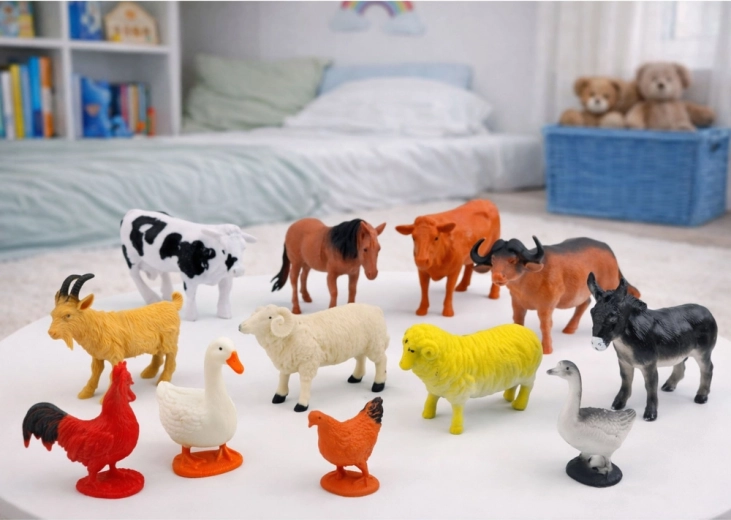 • 12 rôznych figúrok hospodárskych zvierat pre rozmanitú hru