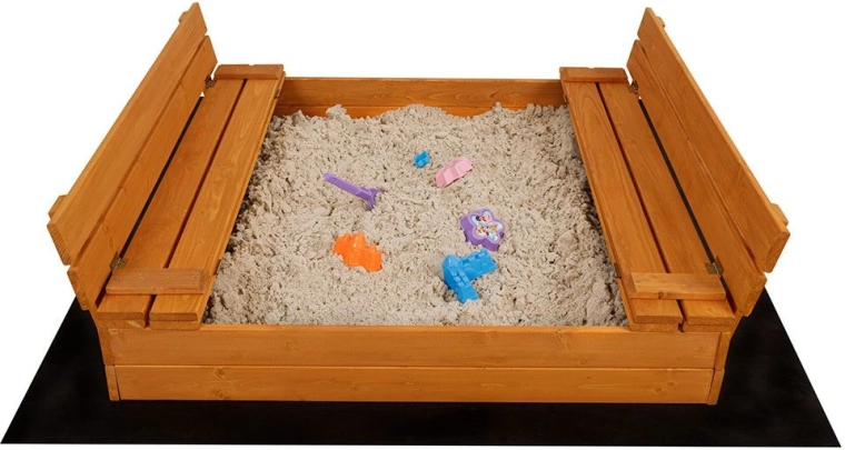 Dve oproti sebe umiestnené lavičky sa po hre jednoducho sklopia a uzavrú celý priestor pieskoviska. Piesok zostane čistý a chránený pred zvieratami aj nečistotami.