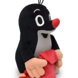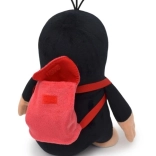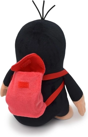 Krtek je vybavený červeným batohom, ktorý pridáva na hravosti a interaktivite hračky.