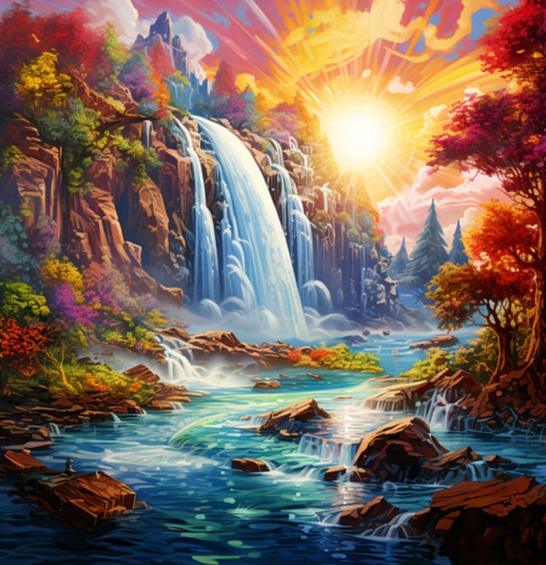 Premente voľné chvíle na relax s trblietavým výsledkom. Diamantové maľovanie je jednoduché: pomocou aplikačného pera nanášate drobné kamienky na vyznačené miesta na samolepiacom plátne. Výsledkom je žiarivý mozaikový obraz s motívom západu slnka pri vodopáde, ktorý môžete po dokončení zarámovať a vystaviť.