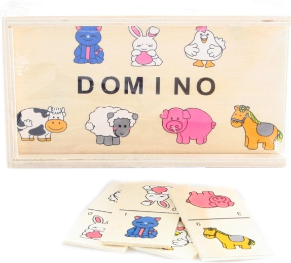 Objavte zábavnú hru pre najmenších – drevené domino so zvieratkami, ktoré rozvíja logiku, jemnú motoriku a poznávanie domácich zvierat. Praktická drevená krabička s rozmermi cca 15,5 × 9 × 4 cm zaistí jednoduché ukladanie aj prenášanie. Vhodné pre deti od 3 rokov.