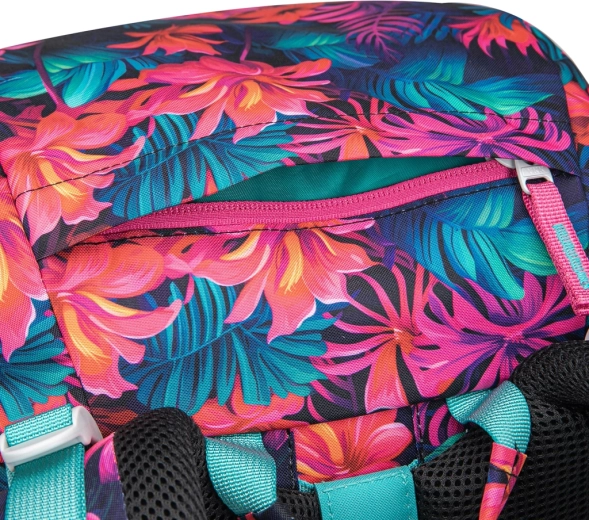 Intuitívne magnetické zapínanie veka umožní rýchle a bezpečné zatváranie aj prváčikom. Vo vnútri nájdete hlavnú komoru s prehľadným organizérom a ľahké plastové dosky, ktoré chránia zošity. Predné termo vrecko udrží desiatu dlhšie čerstvú a zabráni prenosu pachov do ostatných častí batohu. Nechýbajú výrazné reflexné prvky a odolný vodoodolný recyklovaný materiál s certifikáciou GRS.