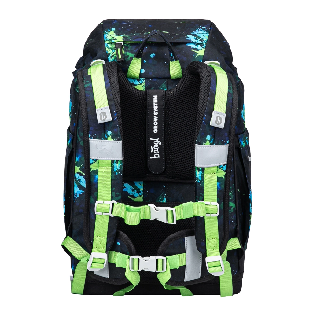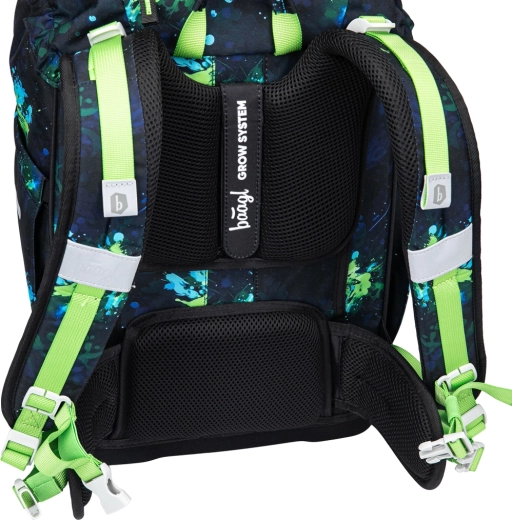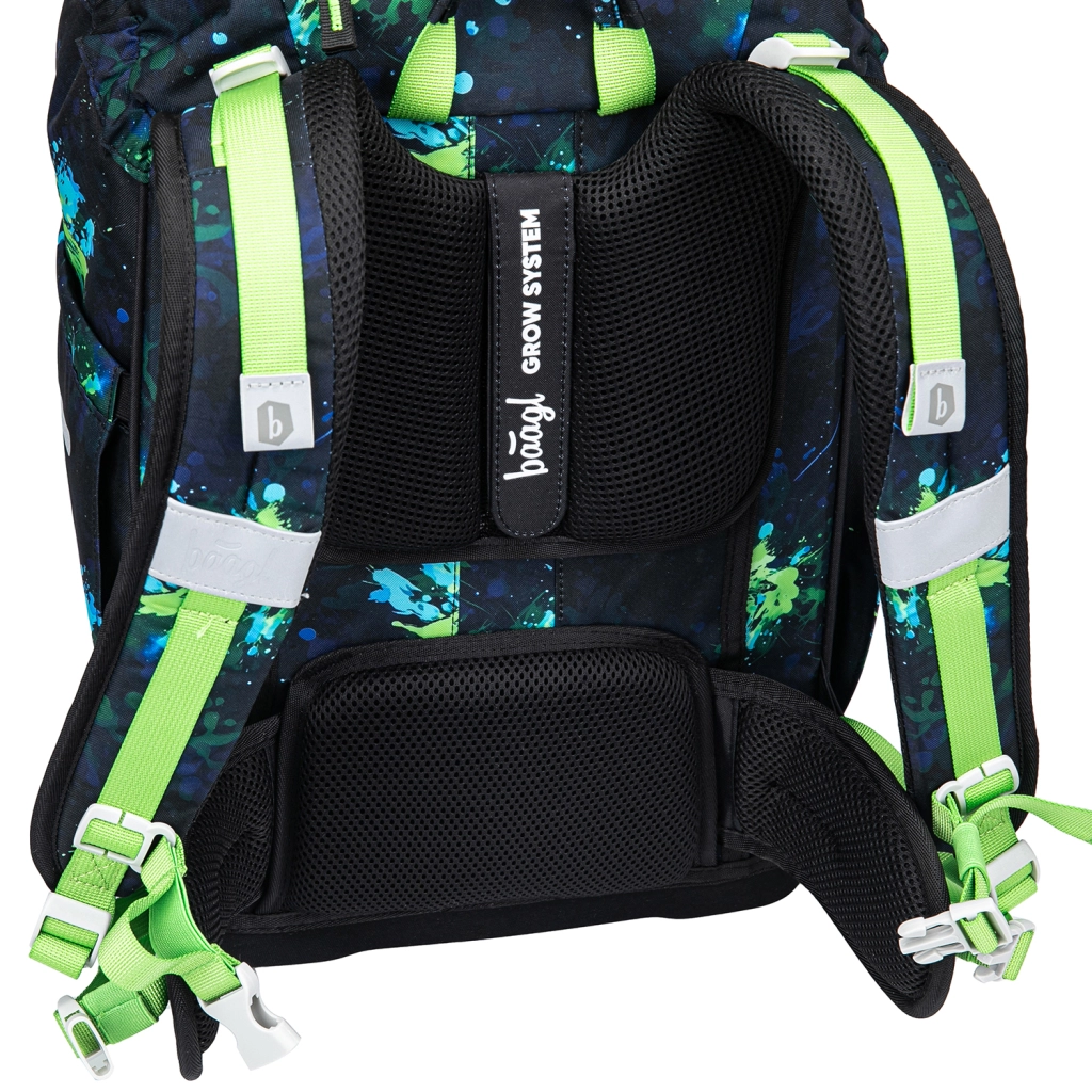Školský batoh Baagl Airy Plus Futbal GRS je navrhnutý pre zdravé držanie tela a každodenný komfort. Vďaka rastúcemu chrbtovému systému Grow ho ľahko nastavíte do troch veľkostí podľa výšky dieťaťa. Anatomicky tvarovaný chrbát s integrovanou hliníkovou výstužou, priedušne polstrované popruhy, odnímateľný bedrový pás a hrudný popruh zabezpečujú stabilitu a správne rozloženie záťaže.