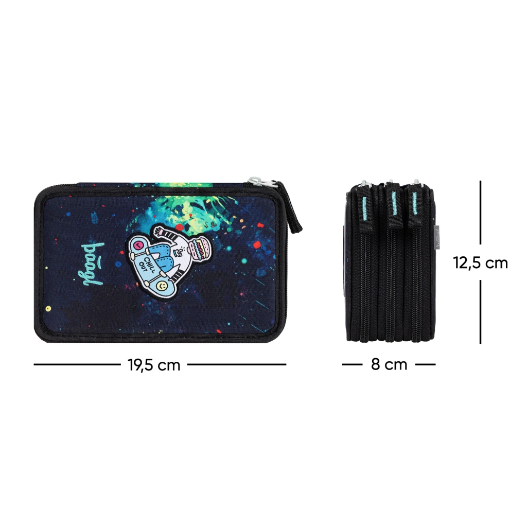 Hľadáte priestranný a odolný peračník do školy? Trojposchodový peračník Baagl Chill GRS poskytne dostatok miesta pre pastelky, fixky, perá aj ďalšie drobnosti. Gumičky sú navrhnuté tak, aby poňali aj hrubšie písacie potreby, a zosilnený chrbát uľahčí každodennú manipuláciu pri zatváraní.