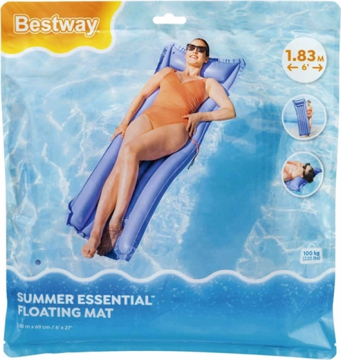 Užívajte si leto na vode s nafukovacou matracou BESTWAY s rozmermi 183 × 69 cm. Vďaka odolnému PVC, integrovanému vankúšu a segmentovaným komorám ponúka stabilné pohodlie pri relaxe v bazéne, jazere aj pri mori. Je ľahká, ľahko sa prenáša a rýchlo sa nafukuje aj vyfukuje; v balení nájdete aj samolepiacu opravnú záplatu.