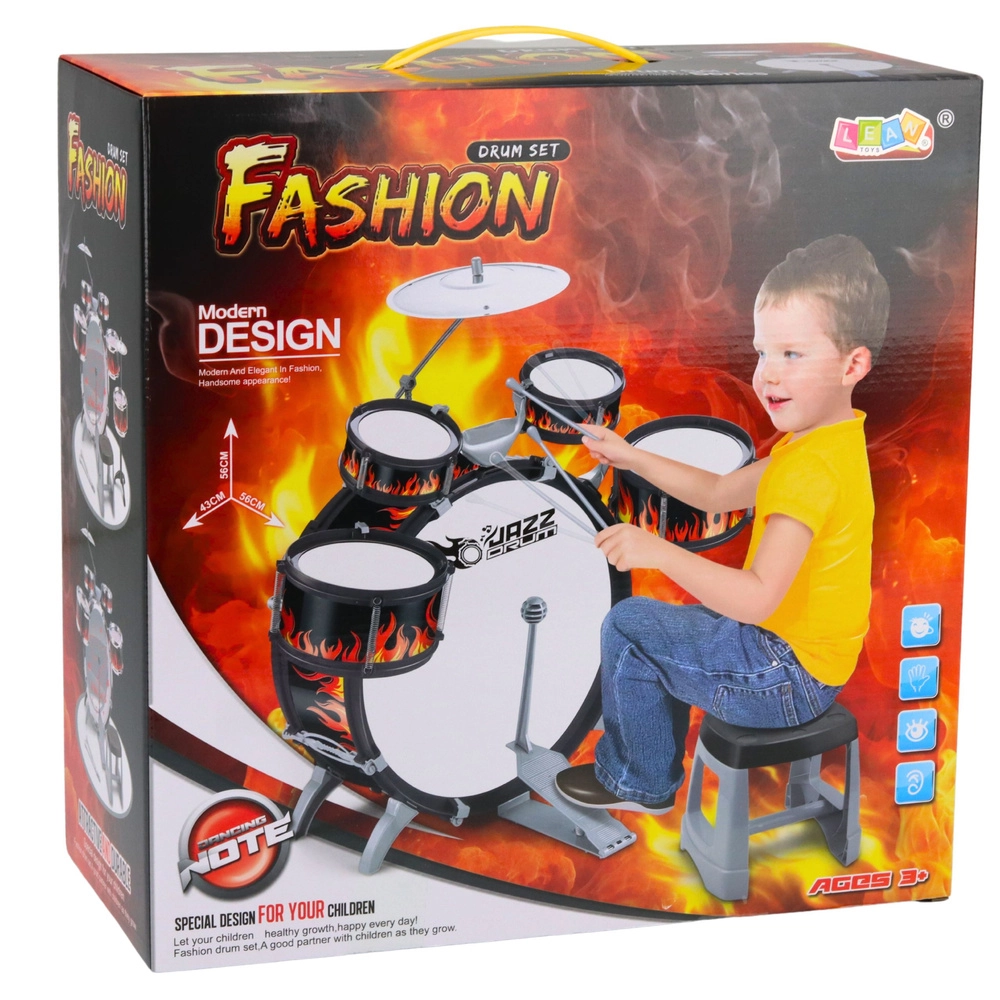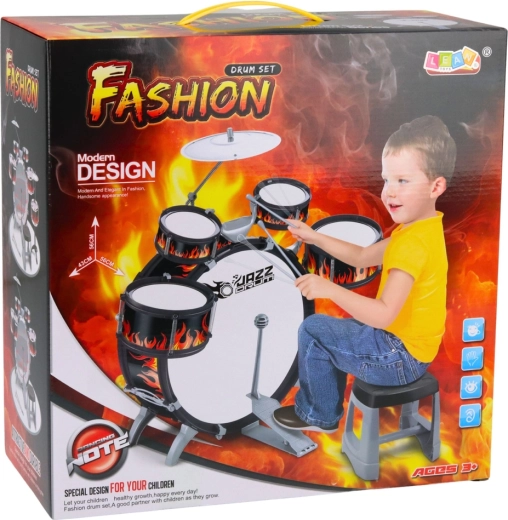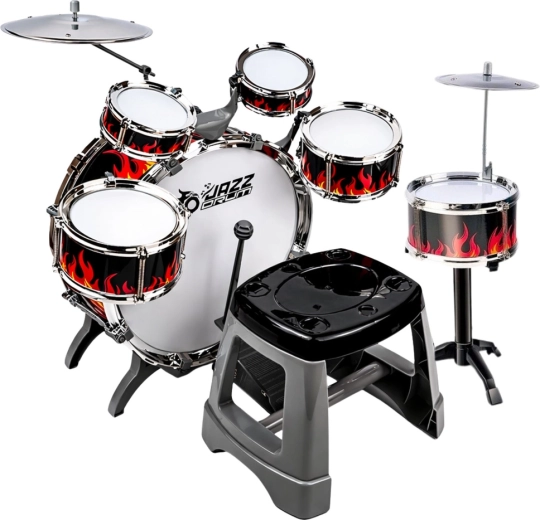 - Sada bubnov, 2 činely, pedál k bubnu, paličky, stolička