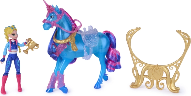 Bábika Isabel (cca 11 cm) má 7 bodov artikulácie pre realistické pózy v sedle aj pri tréningu. Súčasťou sú 3 tréningové doplnky vrátane trofeje a ozdobnej stužky pre jednorožca, ktoré odmenia každý úspech. Set možno kombinovať s ďalšími postavami a jednorožcami zo série na rozšírenie zbierky.