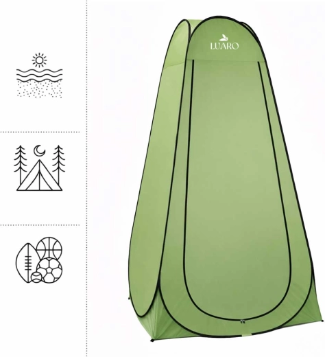 Praktický a mobilný stan LUARO typu pop-up poskytne okamžitú súkromnú kabínu na prezliekanie, sprchovanie alebo toaletu na pláži, v kempe aj na festivale. Vďaka samorozkladacej konštrukcii ho postavíte počas pár sekúnd, je ľahký, vetruodolný a ľahko prenosný v priloženom obale.