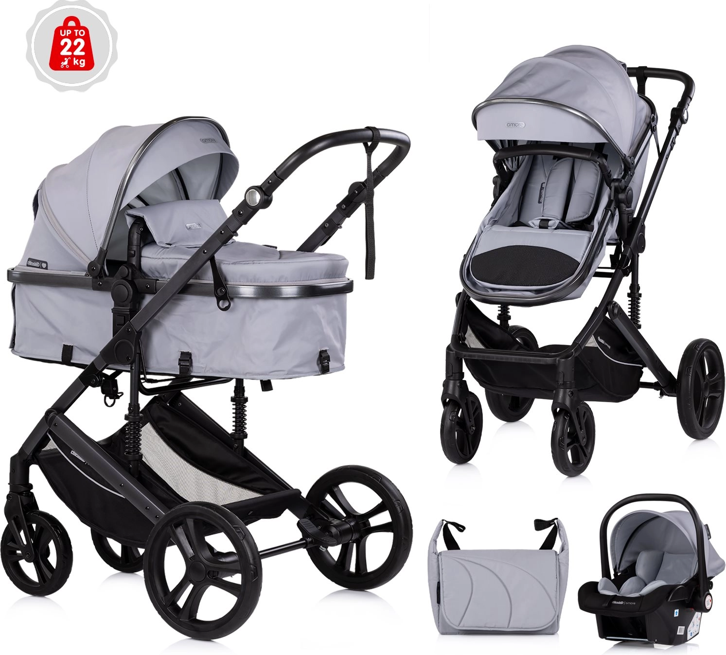 Elegantný kombinovaný kočík pre novorodencov a deti do 22 kg, ktorý spája hlbokú vaničku aj športové sedenie v jednom. Ponúka ľahký rám s odpružením, otočné sedenie po aj proti smeru jazdy, nastaviteľnú rukoväť a priestranný košík. Pre bezpečie dieťaťa je tu 5-bodový pás a odnímateľné madlo, zatiaľ čo veľká strieška s clonou zaistí pohodlie za každého počasia.