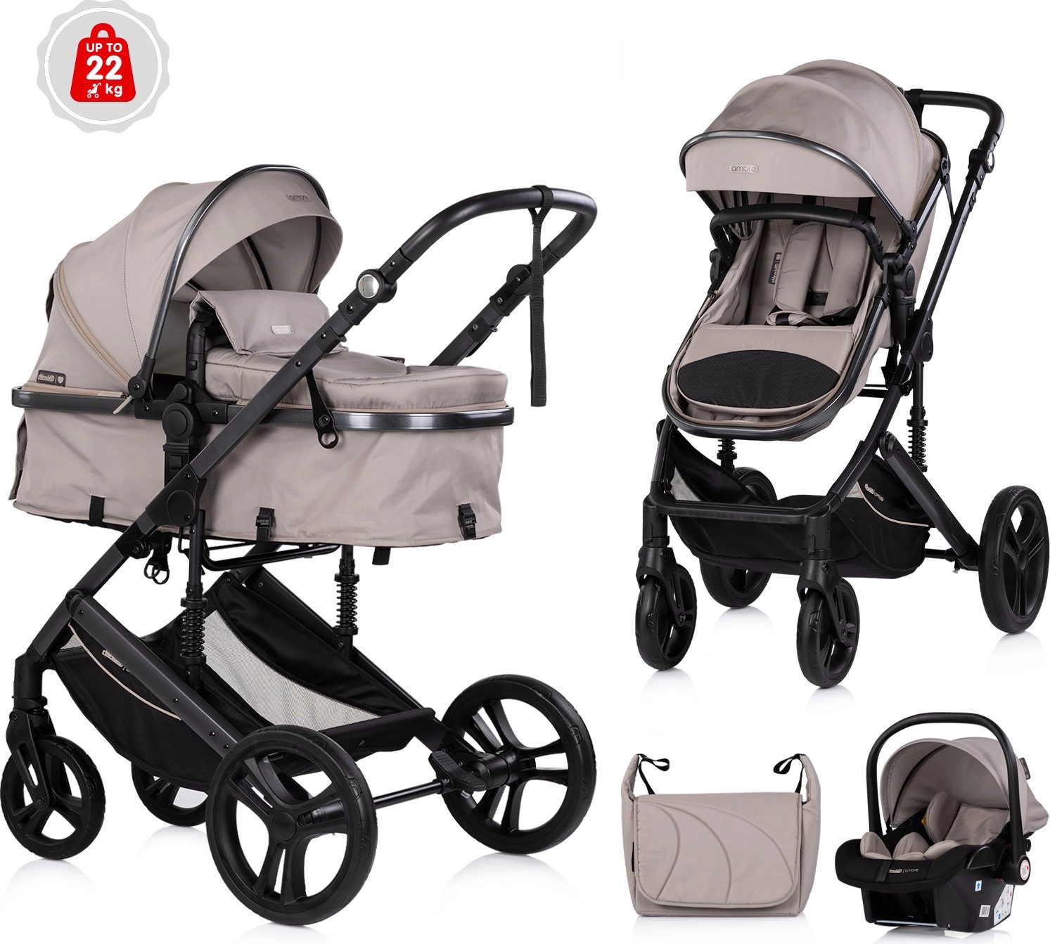 Jednoducho prepnete medzi hlbokou verziou pre novorodencov a priestranným športovým sedením až do 22 kg. Ideálne riešenie na celé prvé roky.
