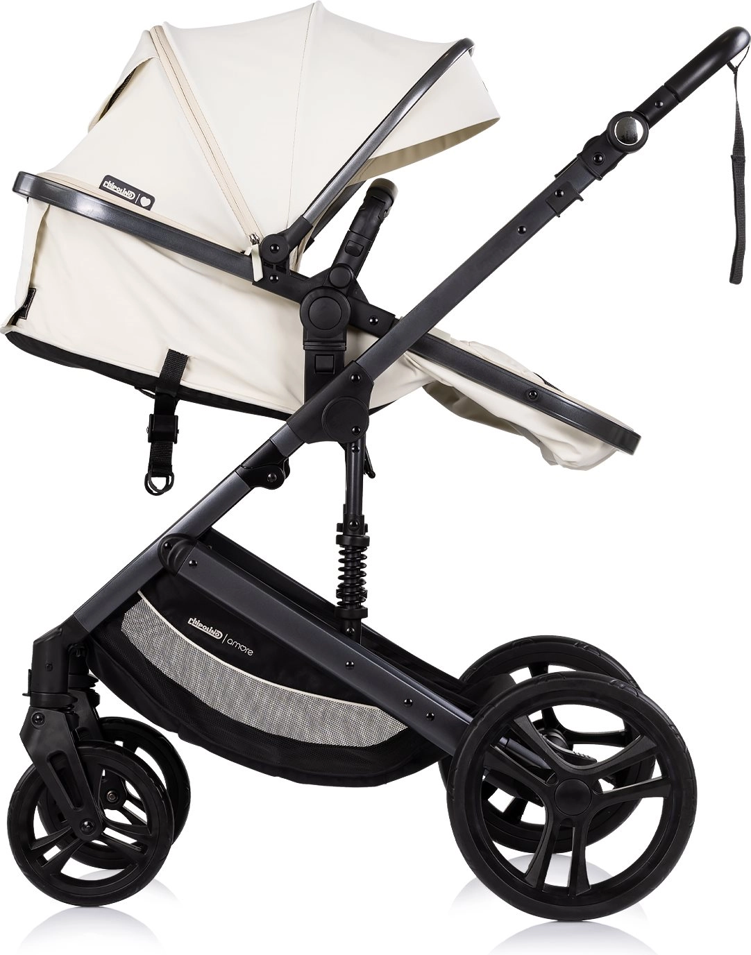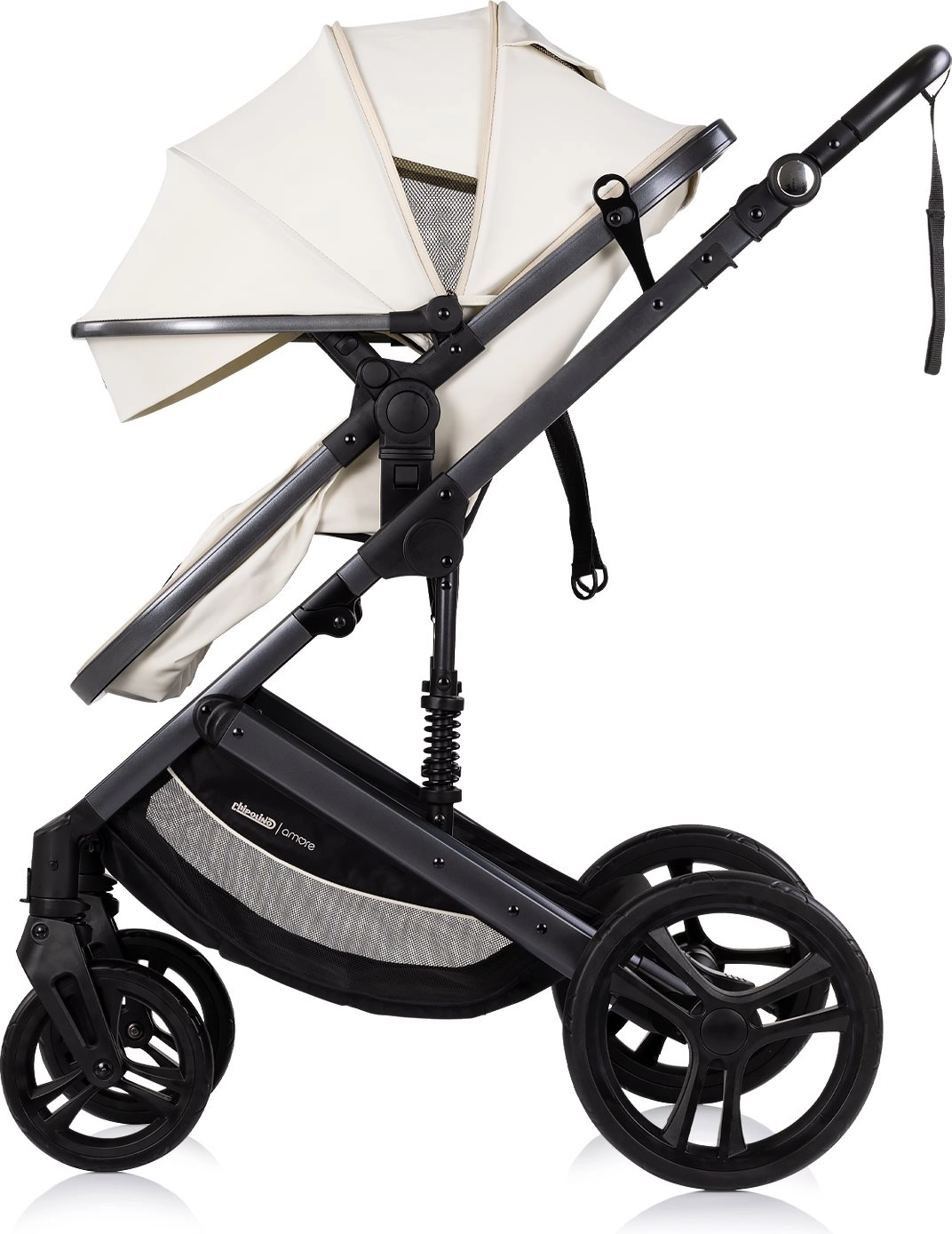 Chipolino Amore 2v1 v odtieni Cashmere je všestranný kočík, ktorý ľahko prepnete zo športovej verzie na hlbokú pre novorodencov. Vďaka odpruženému rámu a veľkým terénnym kolesám ponúka plynulú a komfortnú jazdu v meste aj v ľahšom teréne. Nastaviteľná strieška so slnečnou clonou chráni dieťa, zatiaľ čo 5-bodový pás s polstrovaním a odnímateľné madlo zvyšujú bezpečnosť.