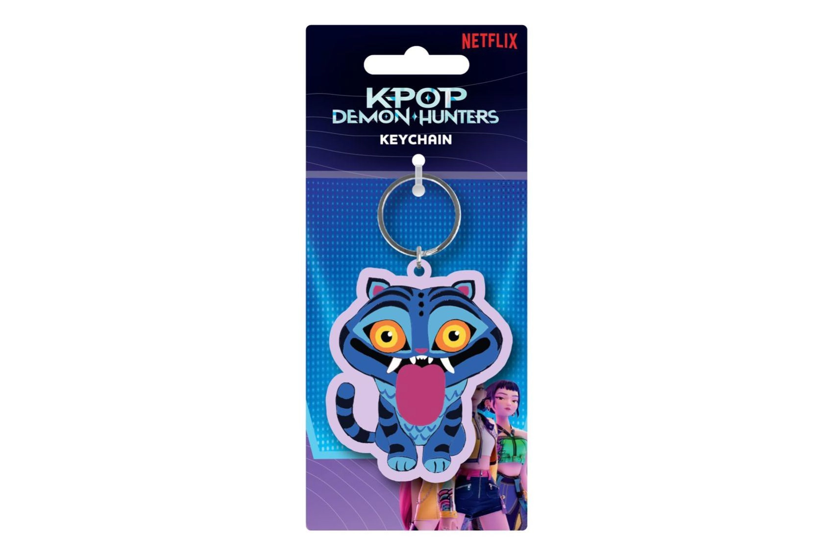 Štýlová kľúčenka s oficiálnou licenciou Netflix inšpirovaná sériou K-pop Demon Hunters. Vyrobená z mäkkej a pružnej gumy, s kovovým krúžkom na jednoduché pripnutie na kľúče, batoh aj kabelku. Výrazný dizajn modrého tigra s oranžovými očami a kresleným štýlom zaručí, že vynikne ako merch pre fanúšikov aj zberateľov.