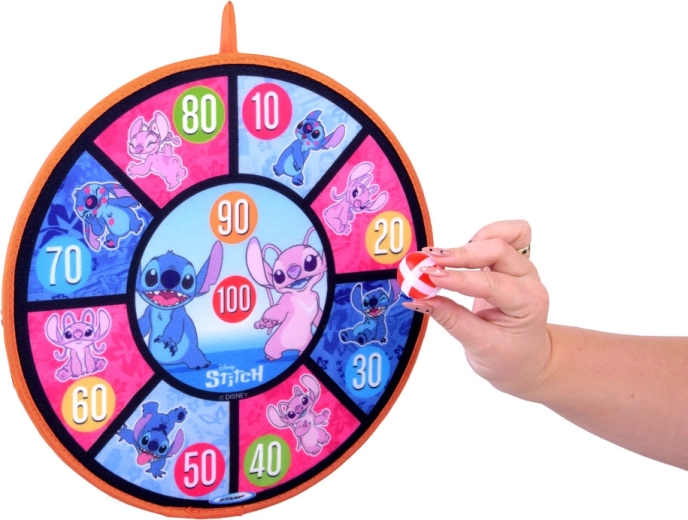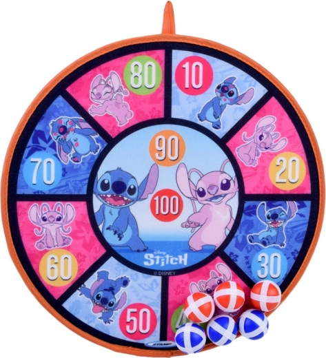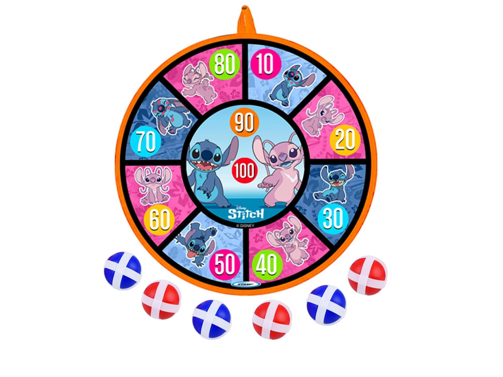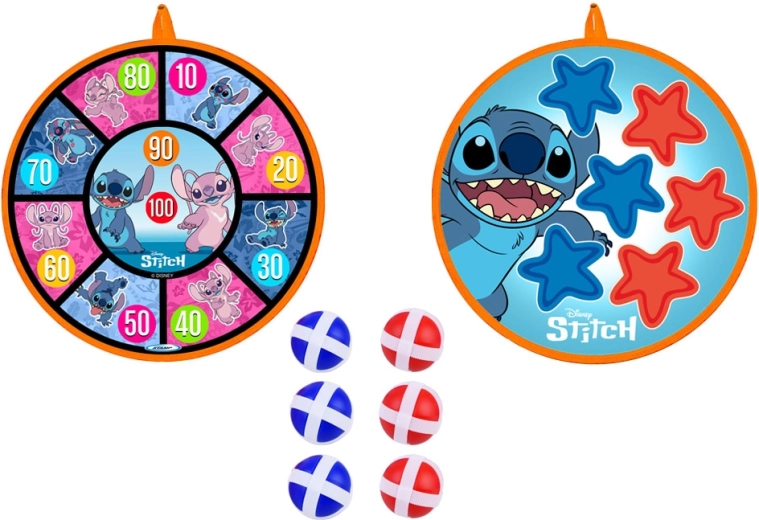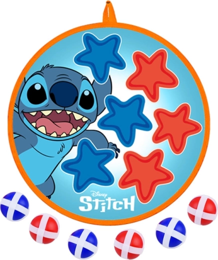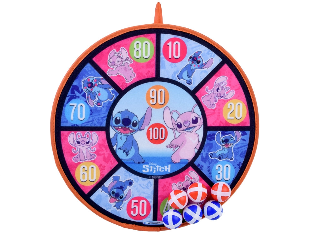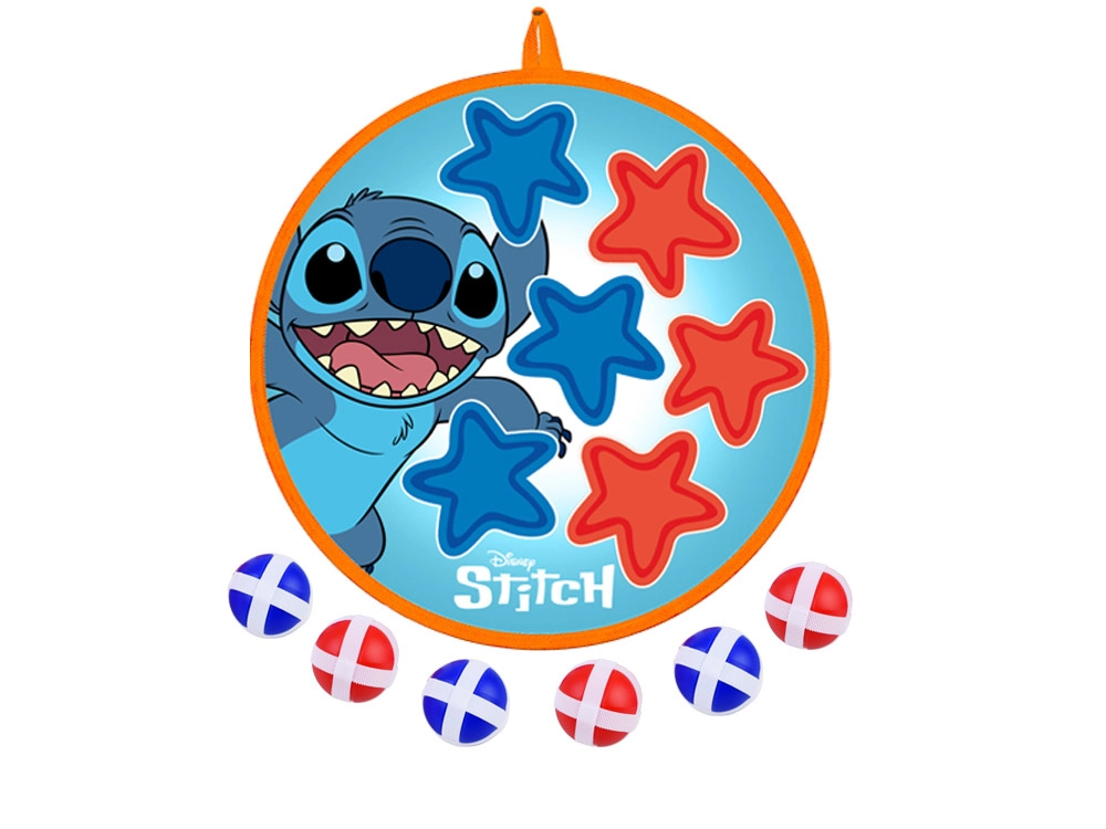 Zábavná a bezpečná hra pre deti s motívom STITCH: obojstranný terč na suchý zips s priemerom 36 cm a 6 ľahkými loptičkami (4 cm). Podporuje koordináciu ruka–oko, presnosť a aktívny pohyb doma aj vonku. Mäkké loptičky sa ľahko prichytia k povrchu a terč možno zavesiť na stenu, dvere alebo v záhrade.
