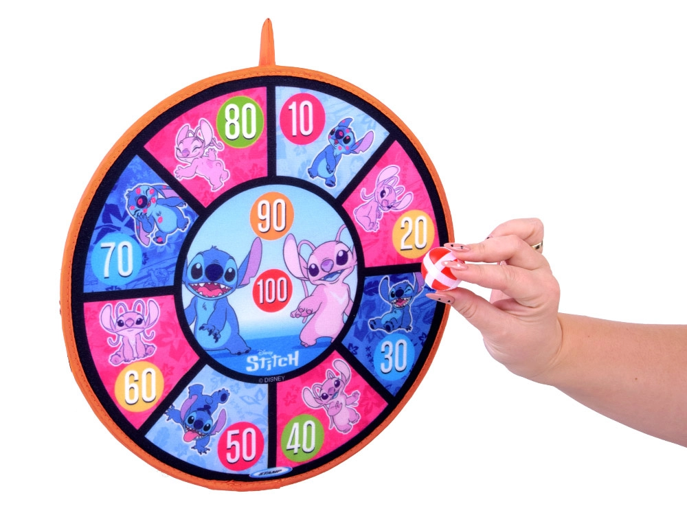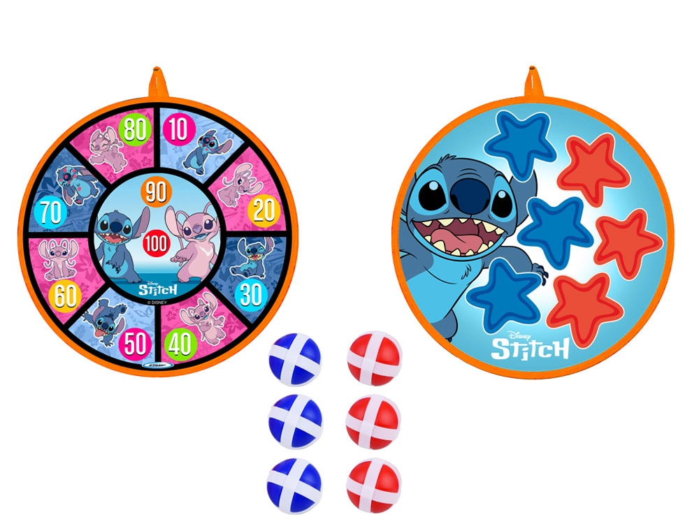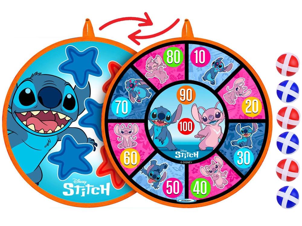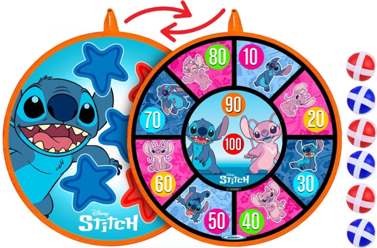 Obojstranný terč na suchý zips so štýlovou grafikou STITCH prináša skvelú pohybovú zábavu pre deti rôzneho veku. Vďaka mäkkému povrchu a ľahkým loptičkám je hra bezpečná a vhodná do interiéru aj na čerstvý vzduch. Terč možno ľahko zavesiť a behom chvíľky pripraviť na súťaže aj tréning presnosti.