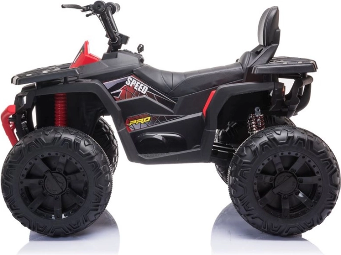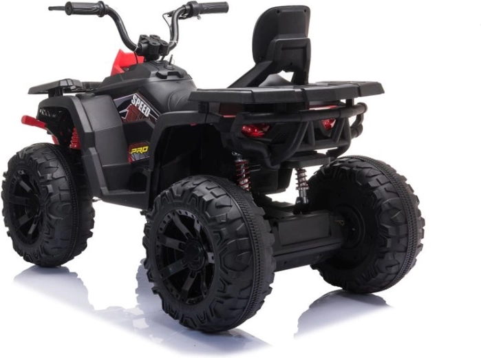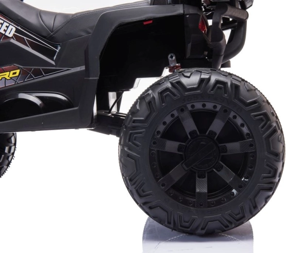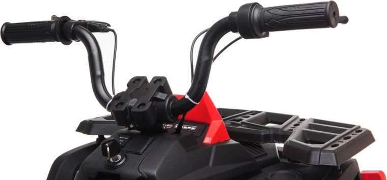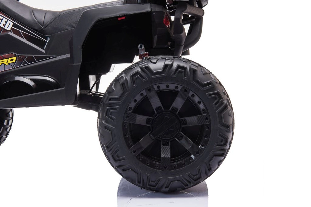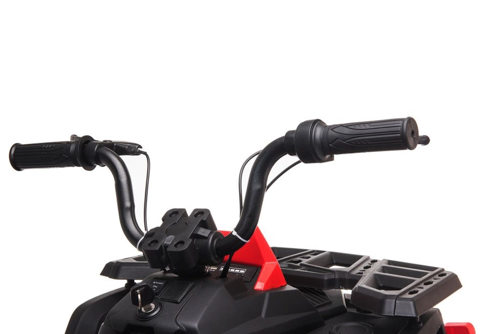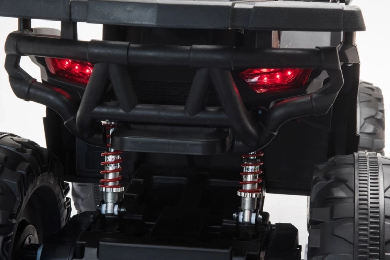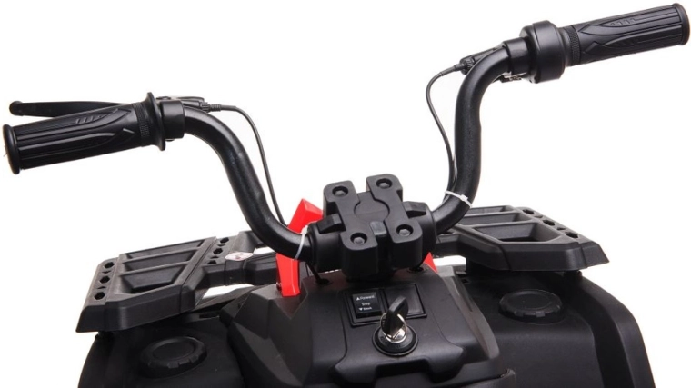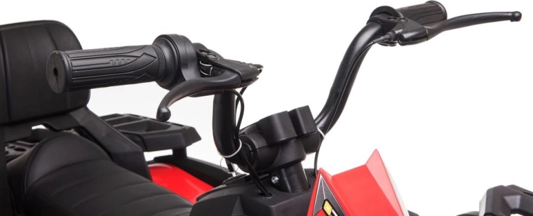 Robustný detský elektrický štvorkolesový motork so širokými terénnymi kolesami, stabilnou konštrukciou a realistickými LED svetlami prináša množstvo zábavy na záhrade aj na pevnom povrchu. Jednoduché ovládanie riadidlami, pohodlné sedlo s opierkou chrbta a prepínač vpred/stop/vzad robia z jazdy bezpečný a zábavný zážitok.