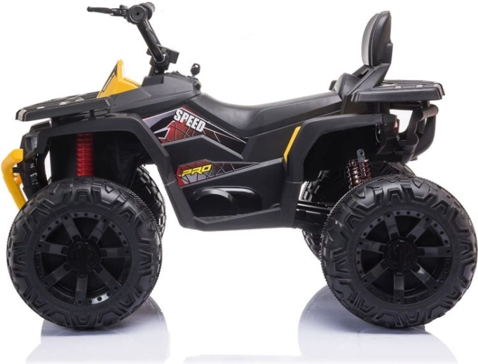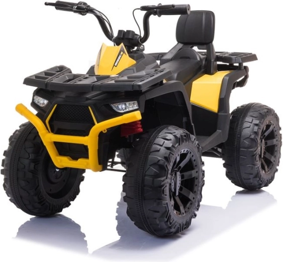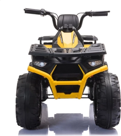 Štýlová detská elektrická štvorkolka v žltej farbe ponúka robustný off-road vzhľad, široké terénne kolesá pre stabilitu a pohodlné sedlo s operadlom. Ideálna pre malých dobrodruhov – jednoduché ovládanie riadidlami, bezpečné stúpadlá a realistické LED prvky pre ešte väčšiu zábavu.