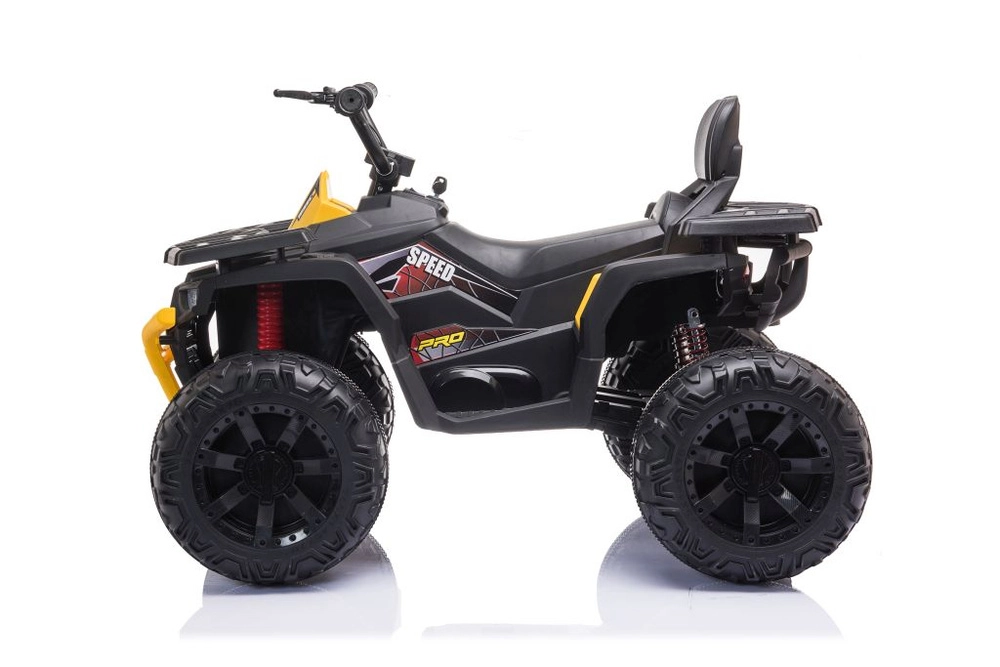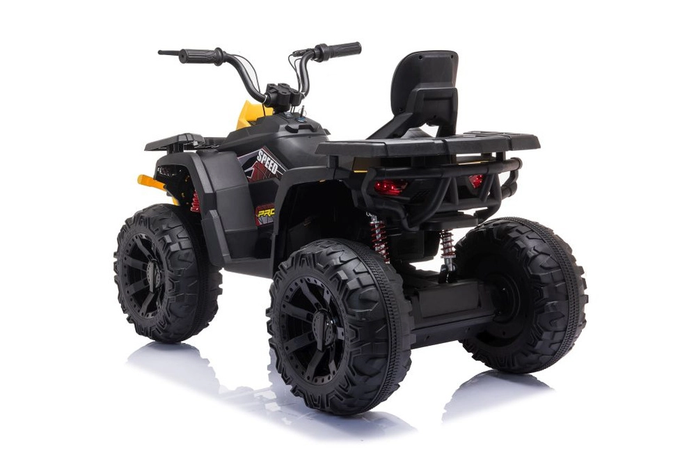 Táto elektrická štvorkolka pre deti kombinuje atraktívny vzhľad ATV s praktickou funkčnosťou. Vďaka veľkým vzorovaným pneumatikám zvláda nerovný povrch na záhrade aj chodníku, zatiaľ čo široké riadidlá a predný nárazník zabezpečujú isté a bezpečné riadenie. Polstrované sedlo s operadlom poskytne pohodlie aj pri dlhšej jazde.
