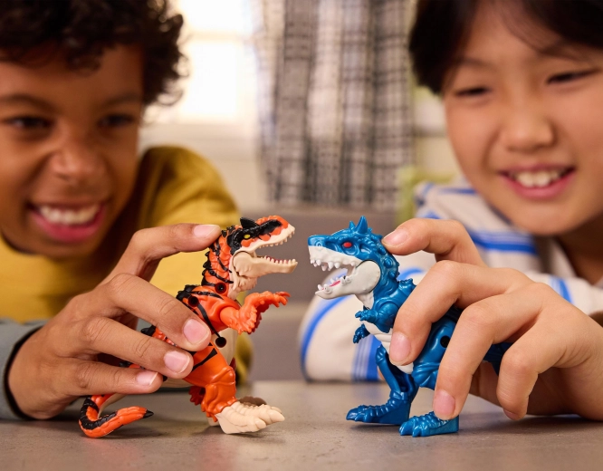 Každá kompaktná dinosauřia figúrka má detailné spracovanie, pohyblivú čeľusť a končatiny pre dynamické pózy, bitky aj rozprávanie vlastných príbehov.
