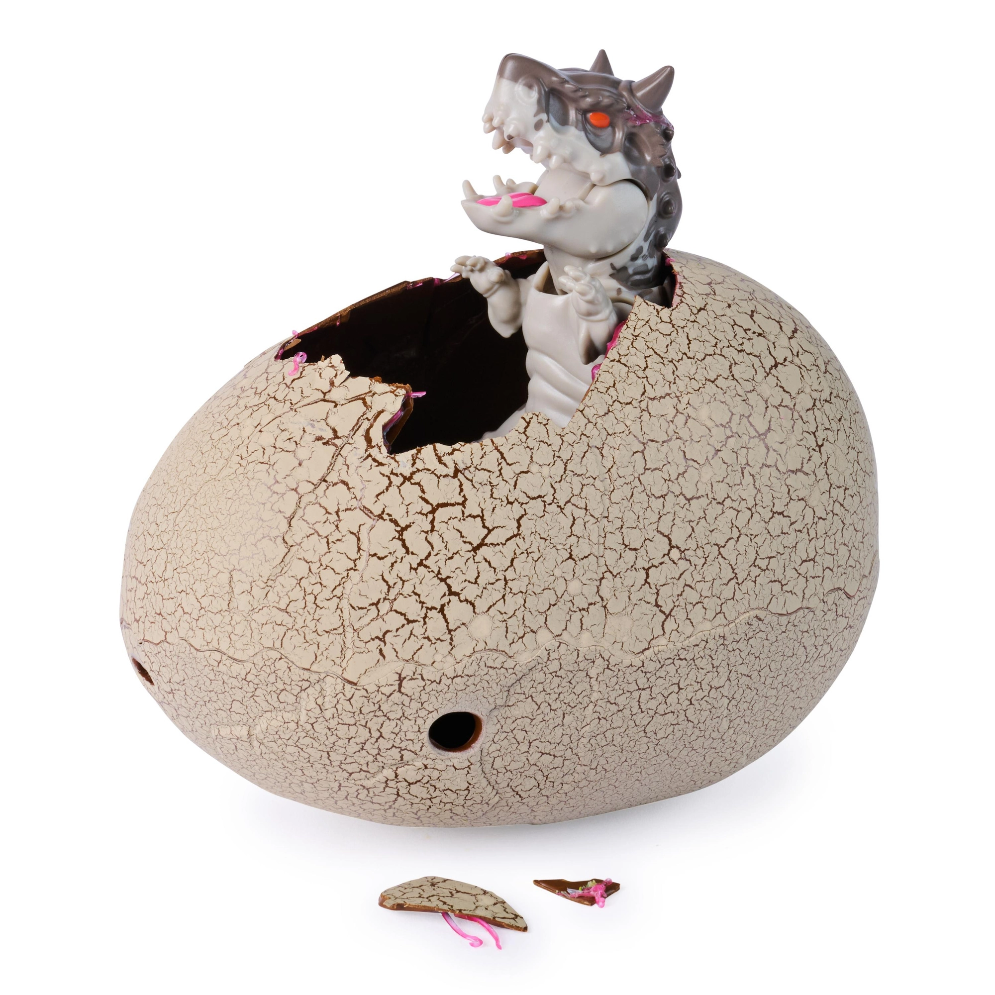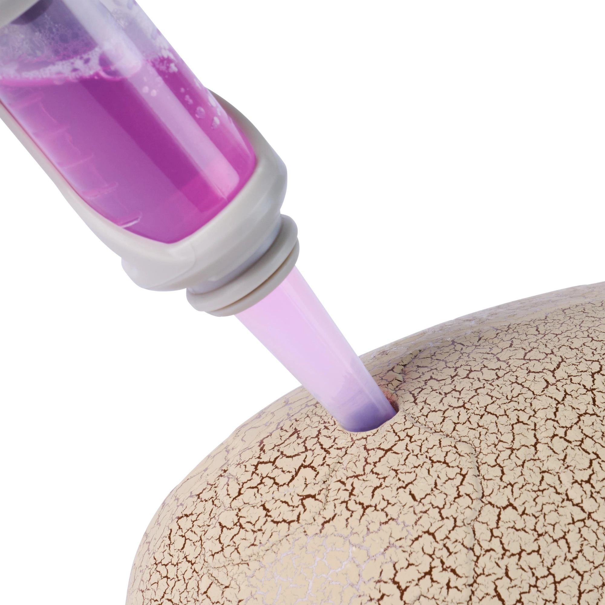 Po vstreknutí tekutiny sa na povrchu vajca objavia praskliny a zvnútra sa vyliahne malý hybridný dinosaurus – okamih, ktorý nadchne každého malého bádateľa.