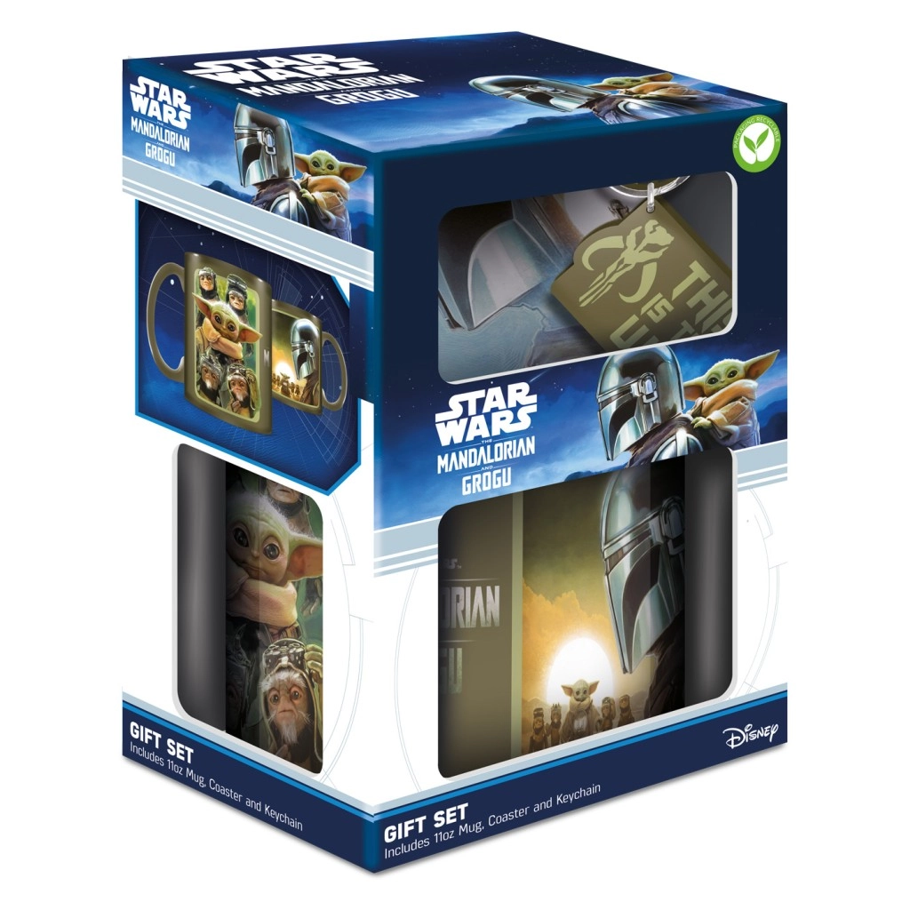 Objavte tematický darčekový set inšpirovaný svetom STAR WARS: THE MANDALORIAN. Sada obsahuje keramický hrnček s grafikou Manda a Grogu, štvorcovú podtácku s ikonickou helmou a robustnú kľúčenku s legendárnym mottom „This is the way“. Všetko je uložené v reprezentatívnom darčekovom balení, ideálnom na obdarovanie.
