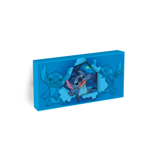 Vdýchnite interiéru hravosť a svetlo. Tento dekoratívny obraz s motívom Lilo & Stitch zaujme realistickým 3D efektom „vylupujúceho sa“ Stitche, ktorý dodáva motívu hĺbku. Dominantná modrá farba v kombinácii s jemným nočným podsvietením vytvorí útulné prostredie v detskej izbe aj hernom kútiku.