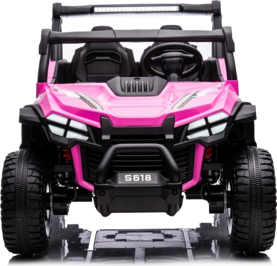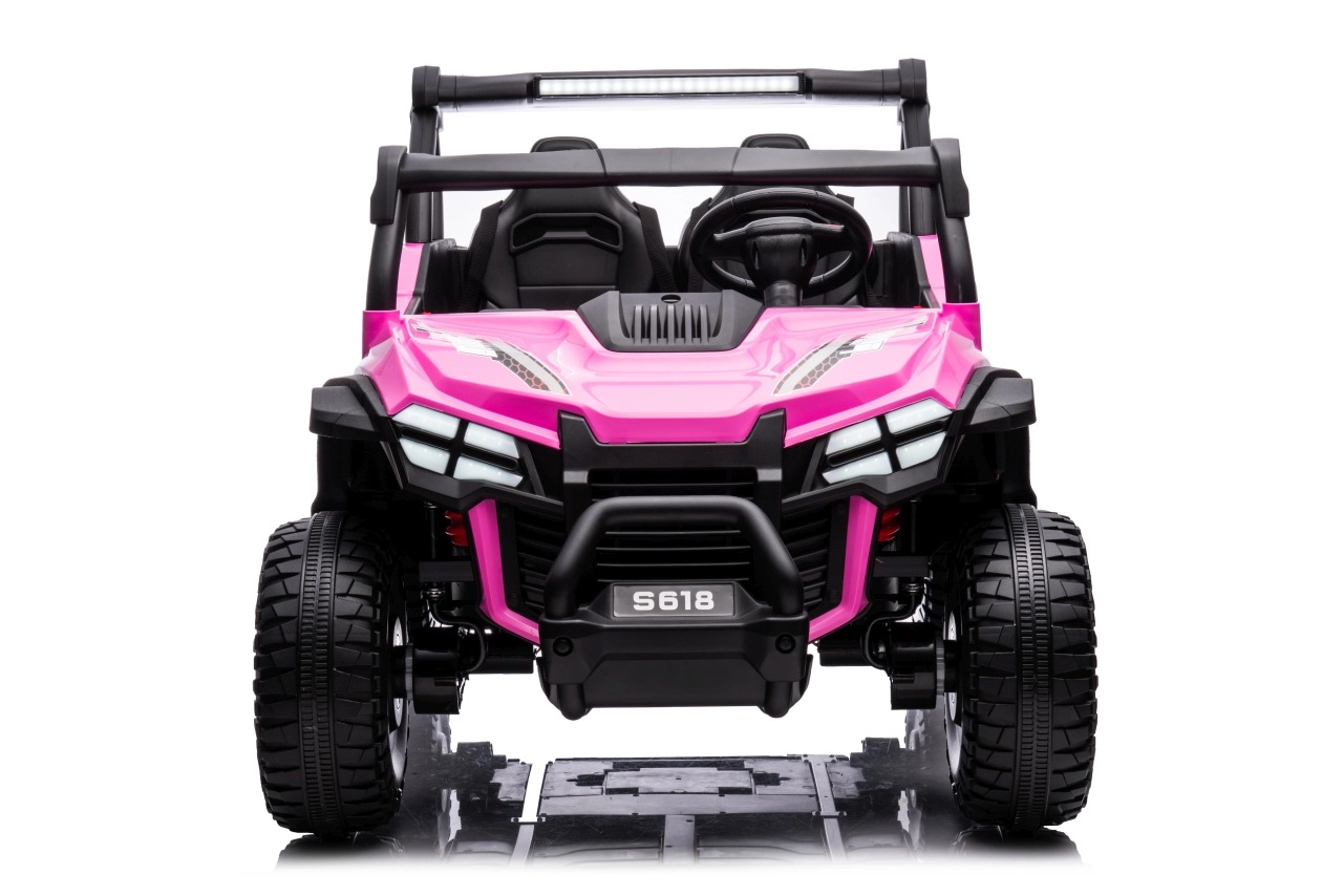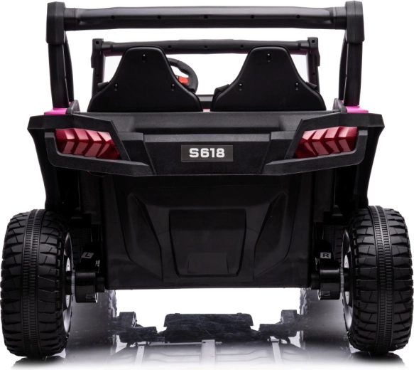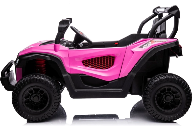 Buggy Gravity 4x4 v ružovej farbe je robustné elektrické vozidlo pre deti, ktoré kombinuje výkon, pohodlie a bezpečnosť. Dva výkonné motory 2×80 W napájané batériou 24 V 7 Ah poskytujú istý záber aj na nespevnených cestách, zatiaľ čo veľké penové EVA kolesá (34×13 cm) a zadné odpruženie zvyšujú komfort a stabilitu. Ovládanie uľahčuje plynulý rozjazd, voľba 2 rýchlostí a jazda vpred/vzad.