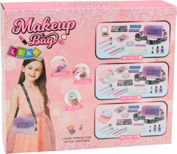 Táto bohatá sada pre malé stylistky kombinuje make-up aj úpravu nechtov v jednom. V elegantnej kabelke s popruhom deti nájdu paletku trblietok a pigmentov, lak na nechty, pilník a oddeľovače prstov, štetček a kompaktnú sušičku na nechty na batérie. Vďaka pestrým farbám a trblietkam môžu bezpečne experimentovať a vytvárať originálny vzhľad.