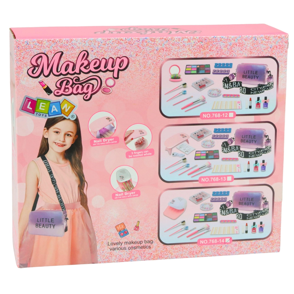 Štýlová detská sada krásy v praktickej kabelke prináša všetko pre zábavný make-up a manikúru. Obsahuje paletku trblietok, laky na nechty, doplnky aj sušičku na nechty pre rýchle schnutie. Ideálna na kreatívnu hru, rozvoj jemnej motoriky a fantázie – deti si zahrajú na vlastný salón krásy doma aj na cestách.