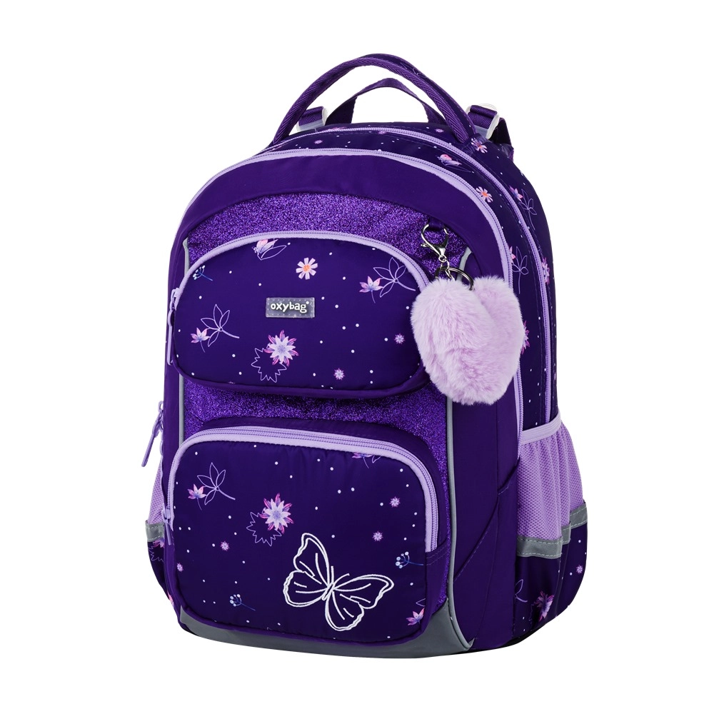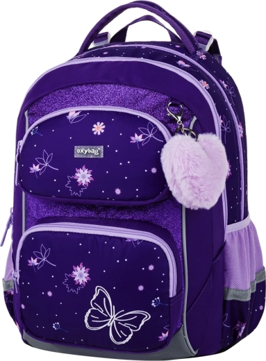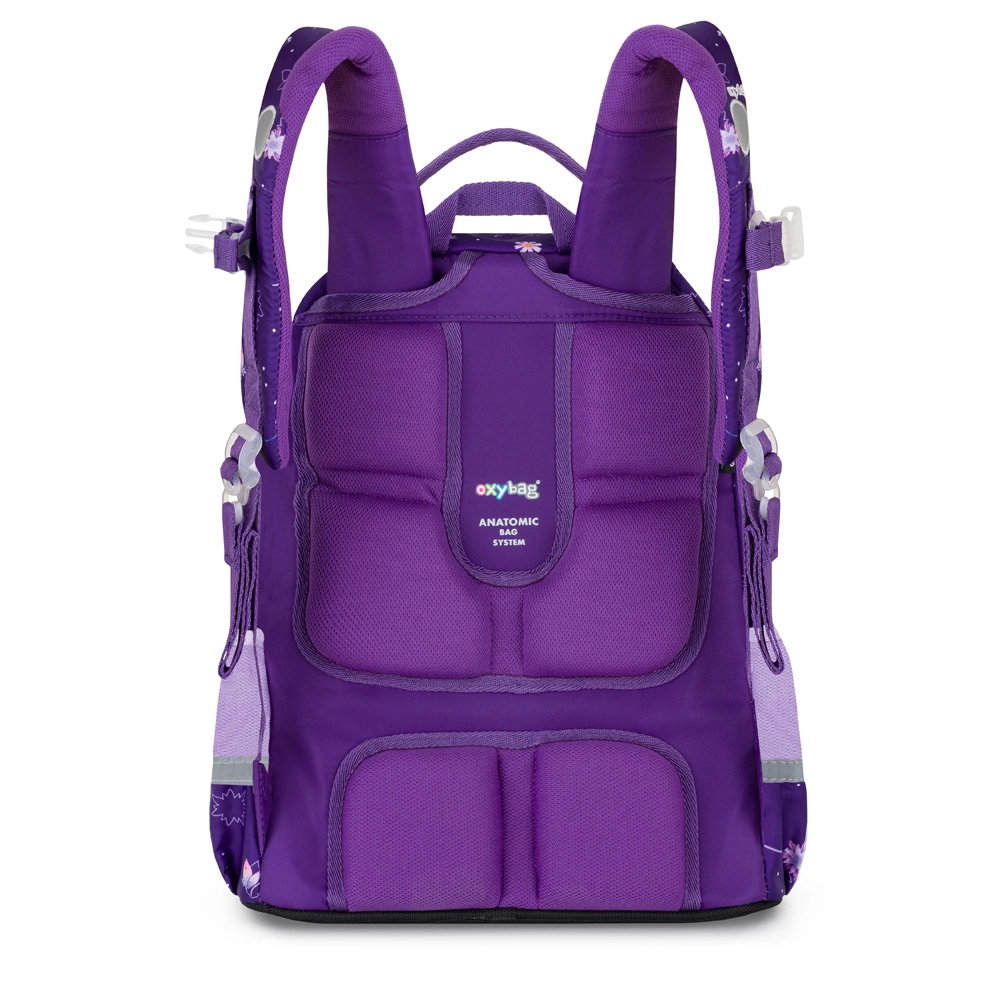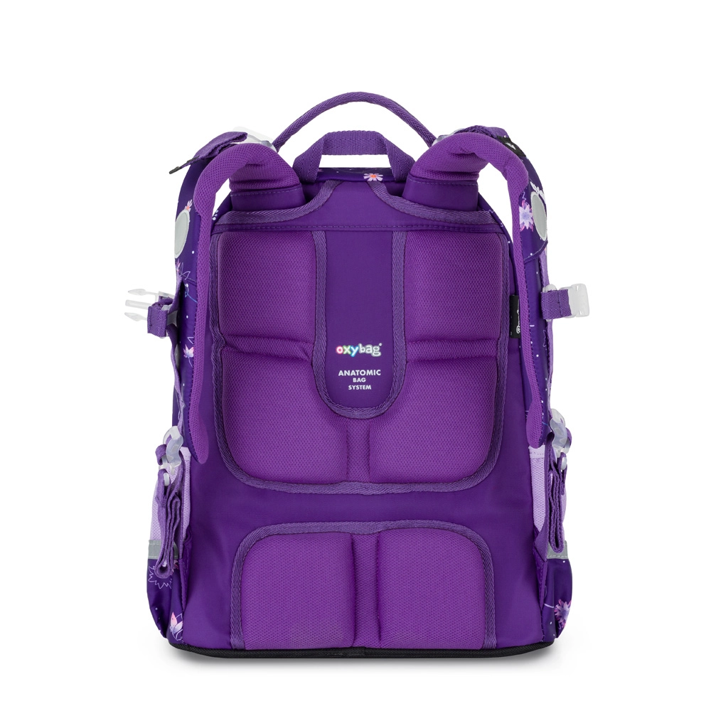Školský set OXY Jumper Flowers je navrhnutý pre pohodlné každodenné nosenie a prehľadnú organizáciu školských potrieb. Dve priestranné komory pojmú učebnice aj zošity, predné vrecko je ideálne na desiatový box a bočné sieťované vrecká udržia fľašu vždy po ruke. Ergonomicky tvarovaný chrbtový panel a odpružené ramenné popruhy s hrudným popruhom rozkladajú záťaž a zvyšujú komfort.