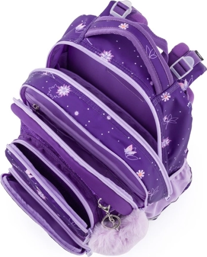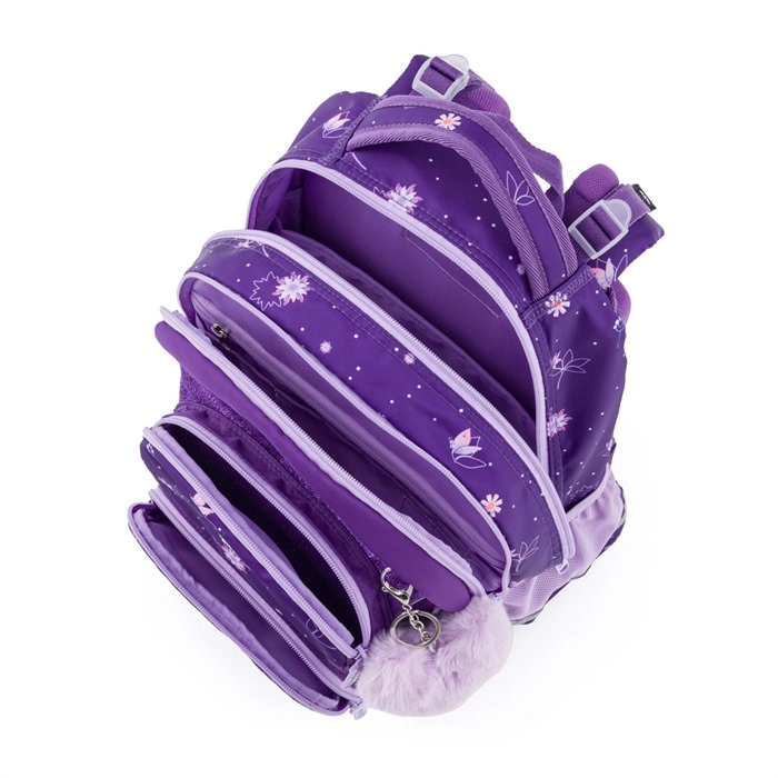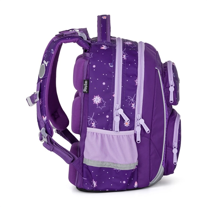Bezpečnosť podporuje množstvo reflexných prvkov, odolnosť zas spevnené, nepremokavé dno a kvalitné zipsy. Set dopĺňa jednoposchodový peračník na prehľadné uloženie písacích potrieb a ľahké vrecúško na prezuvky/úbor v rovnakom kvetinovom dizajne. Ideálna voľba pre prvý aj druhý stupeň základnej školy.