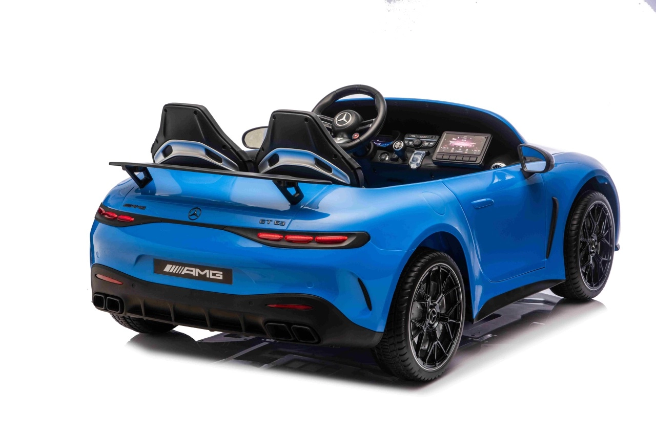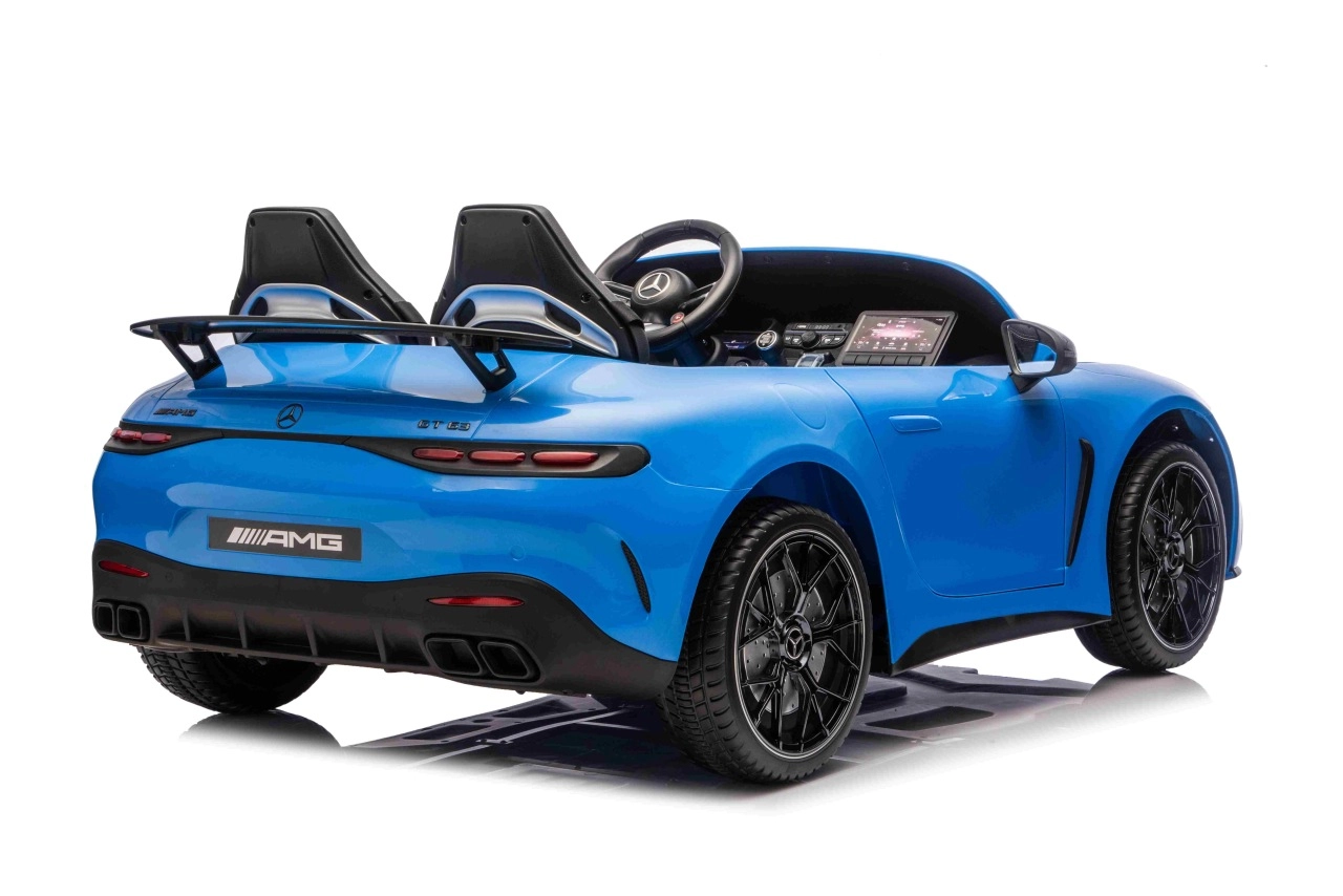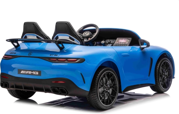 Štýlové detské elektrické autíčko inšpirované modelom MERCEDES-BENZ GT 63 AMG ponúkne výkonný pohon 4x200 W, batériu 24 V / 7 Ah, dvojmiestne sedenie z eko kože a otváracie dvere. Pre maximálnu zábavu nechýbajú LED svetlá, FM rádio, USB/MP3/Bluetooth/AUX a bezpečné ovládanie pomocou 2,4GHz diaľkového ovládača s tlačidlom núdzového zastavenia.