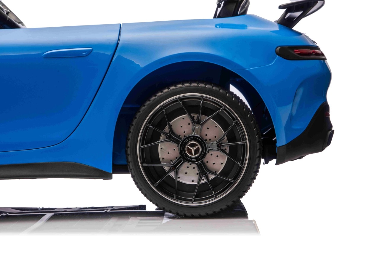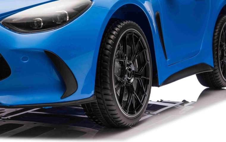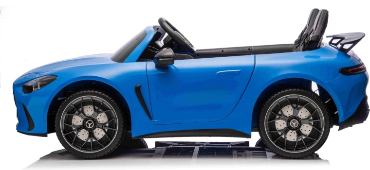 Splnený sen malých vodičov: elektrické autíčko MERCEDES-BENZ GT 63 AMG v elegantnej modrej farbe kombinuje športový vzhľad so silným výkonom a špičkovou výbavou. Štyri motory s výkonom 200 W každý a batéria 24 V / 7 Ah zaistia plynulú jazdu, zatiaľ čo zadné odpruženie a mäkké EVA kolesá 27×9 cm sa postarajú o komfort aj na nerovnom povrchu.