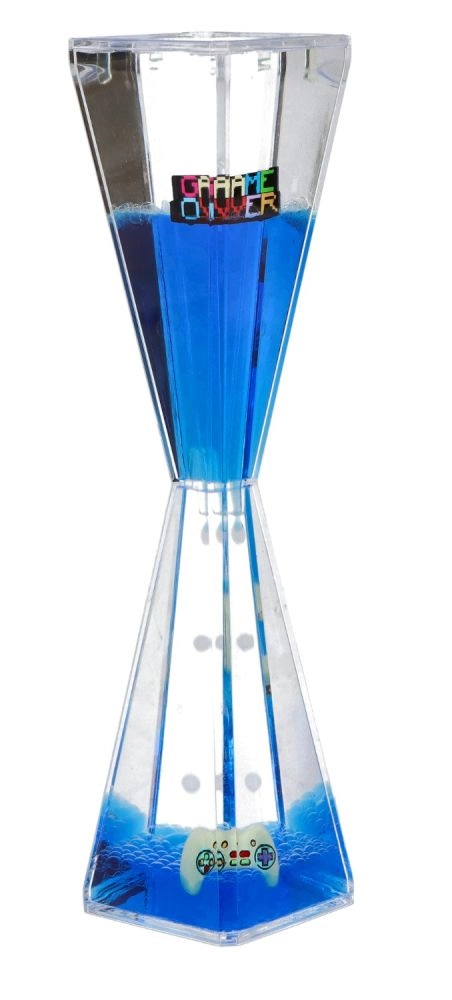 Užívajte si pokojný tok kvapiek v priehľadnom tele v tvare presýpacích hodín. Gélová tekutina plynule steká z hornej komory do spodnej a vytvára podmanivý efekt, ktorý pomáha upokojiť myseľ a podporiť sústredenie. Herná grafika a nápis Game Over z nej robia ideálny darček pre hráčov aj milovníkov dizajnových vychytávok.