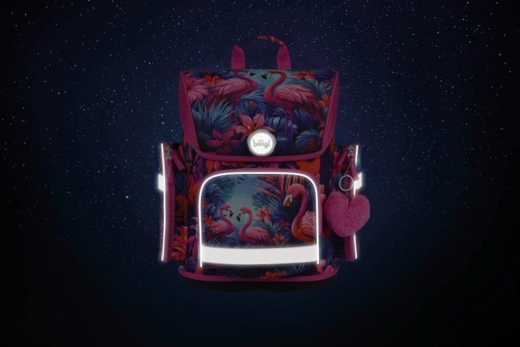 - Jednotný dizajn: výrazný motív plameniakov pre zladený školský štýl.
