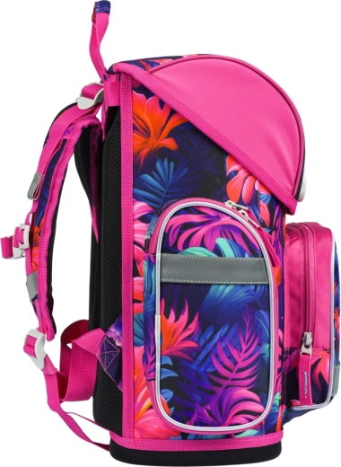 Kompletná školská výbava v jednotnom dizajne PLAMEŇIAKY poteší každého školáka aj rodičov. Ergonomická aktovka s nastaviteľným systémom ERGO ADJUSTABLE SYSTEM rastie s dieťaťom, má polstrovaný chrbát, nastaviteľné ramenné, prsné aj bočné popruhy a spoľahlivé magnetické zapínanie Fidlock pre ľahké a rýchle otváranie. Vodeodolné materiály, stabilné dno a reflexné prvky zvyšujú odolnosť a bezpečnosť pri každodennom nosení.
