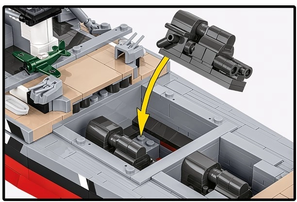 Ikona námornej histórie v podobe modelu BISMARCK prináša monumentálny zážitok zo stavby aj vystavenia. Vďaka verne spracovaným proporciám, detailnej nástavbe a výzbroji vynikne v každej zbierke. Všetky označenia a detaily sú trvanlivo natlačené priamo na dielikoch, takže si model zachová perfektný vzhľad po dlhé roky.