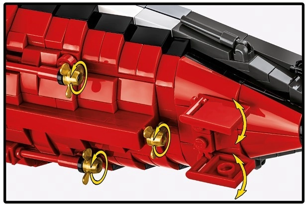 Stavebnica kombinuje realistické funkcie (otočné veže, pohyblivé prvky, vyberateľné časti pohonného systému) s premyslenou konštrukciou a intuitívnym návodom, vďaka ktorému je aj taký veľký projekt plynulý a zábavný. Súčasťou je elegantný stojan s tabuľkou na bezpečnú a reprezentatívnu expozíciu.