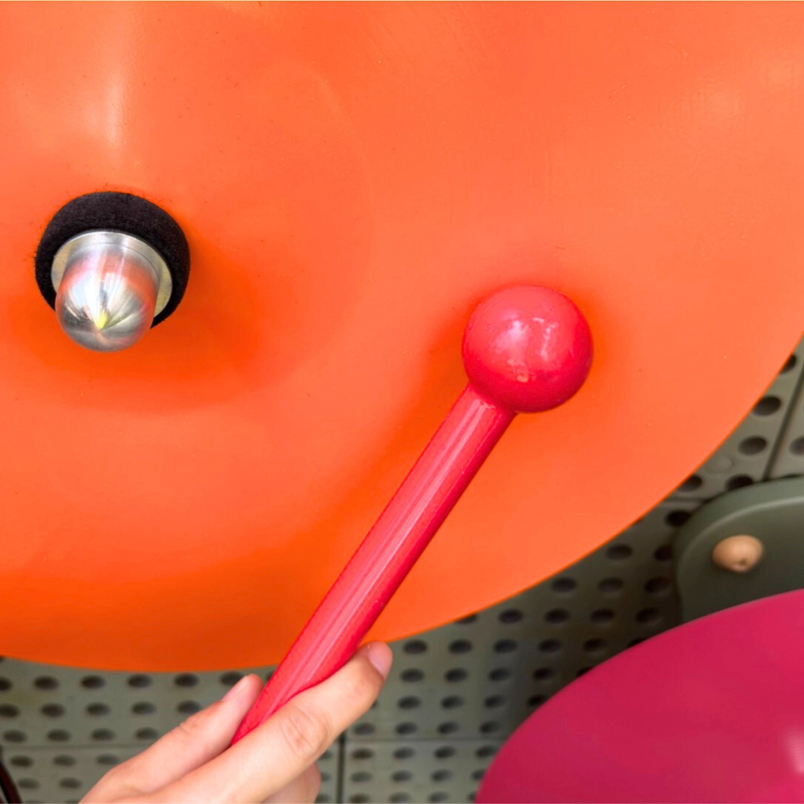 Táto sada troch kontrastne farebných perkusných činelov (oranžový, zelený, ružový) premení akýkoľvek priestor na hudobnú zónu, kde si deti budujú cit pre rytmus, spoluprácu a sebavyjadrenie. Každý činel vydáva odlišný charakteristický zvuk, vďaka čomu deti ľahko rozlišujú tóny a vytvárajú vlastné hudobné sekvencie.