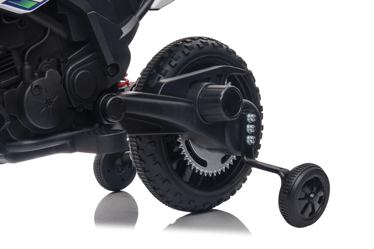 Štýlová detská elektrická motorka APRILIA RX nadchne malých jazdcov realistickým vzhľadom, silným pohonom 2x35 W a bezpečnými bočnými kolieskami. Ponúka batériu 12 V 7 Ah na dlhšiu jazdu, EVA kolesá pre tichý a komfortný chod, LED predné svetlá a multimediálny audio panel s MP3/USB/Bluetooth. Pohodlné sedadlo z eko kože a zadné pružinové odpruženie zaistia komfort aj na nerovnom povrchu.